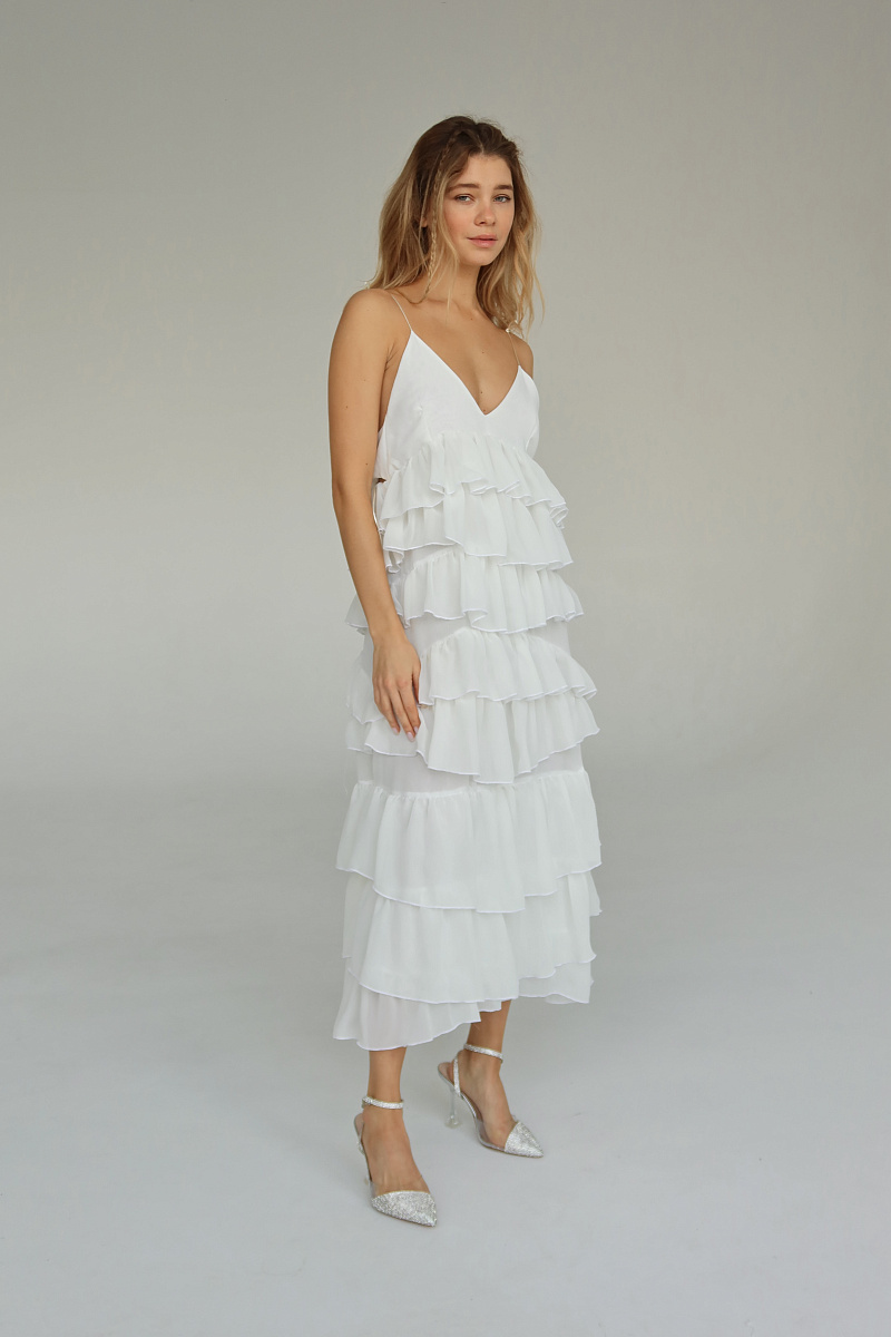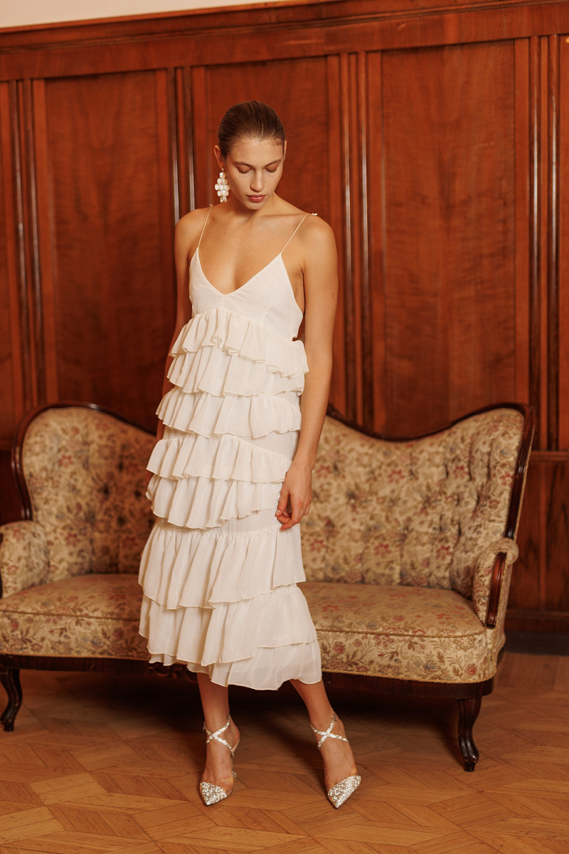 Платье струится в каждом движении, делая образ совершенно незабываемым.
