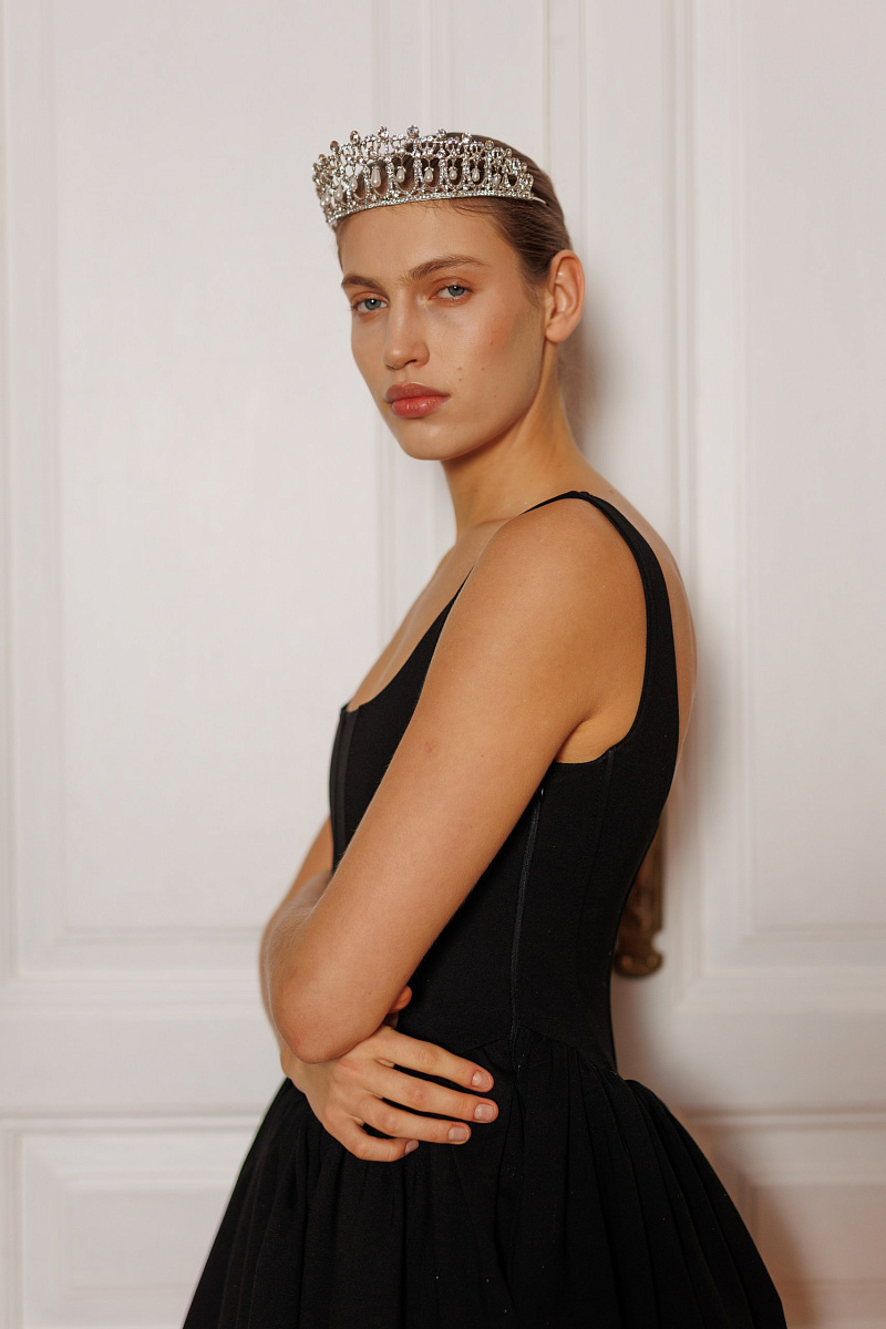 Под заказПлатье Koko – маленькое чёрное платье в духе Chanel, но в более смелом, коктейльном прочтении. В нём сочетаются наивная женственность и архитектурность силуэта.