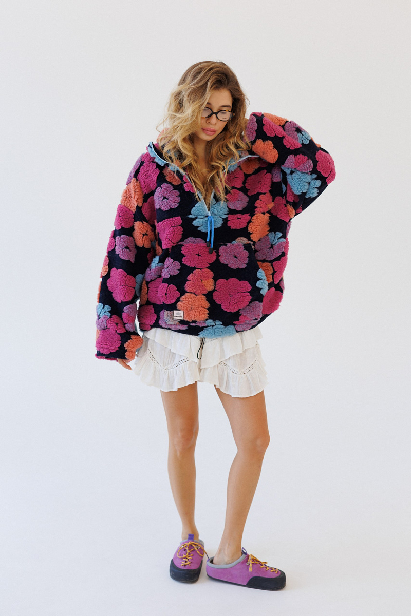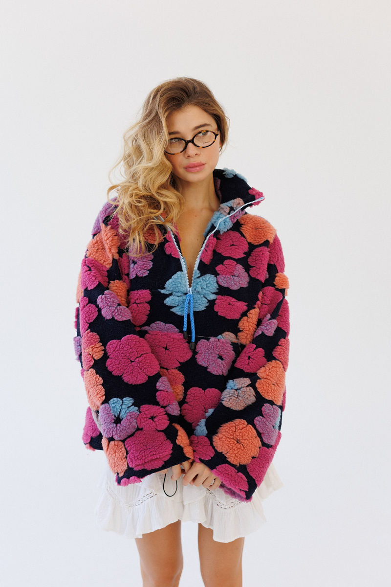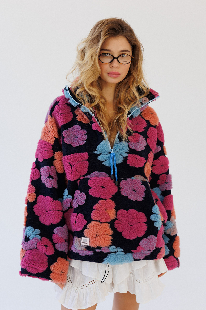 Именно это буйство красок и стало основой принта Азоры — каждый цветок выполнен в технике patchwork вручную, поэтому ни одно изделие не повторяет другое.