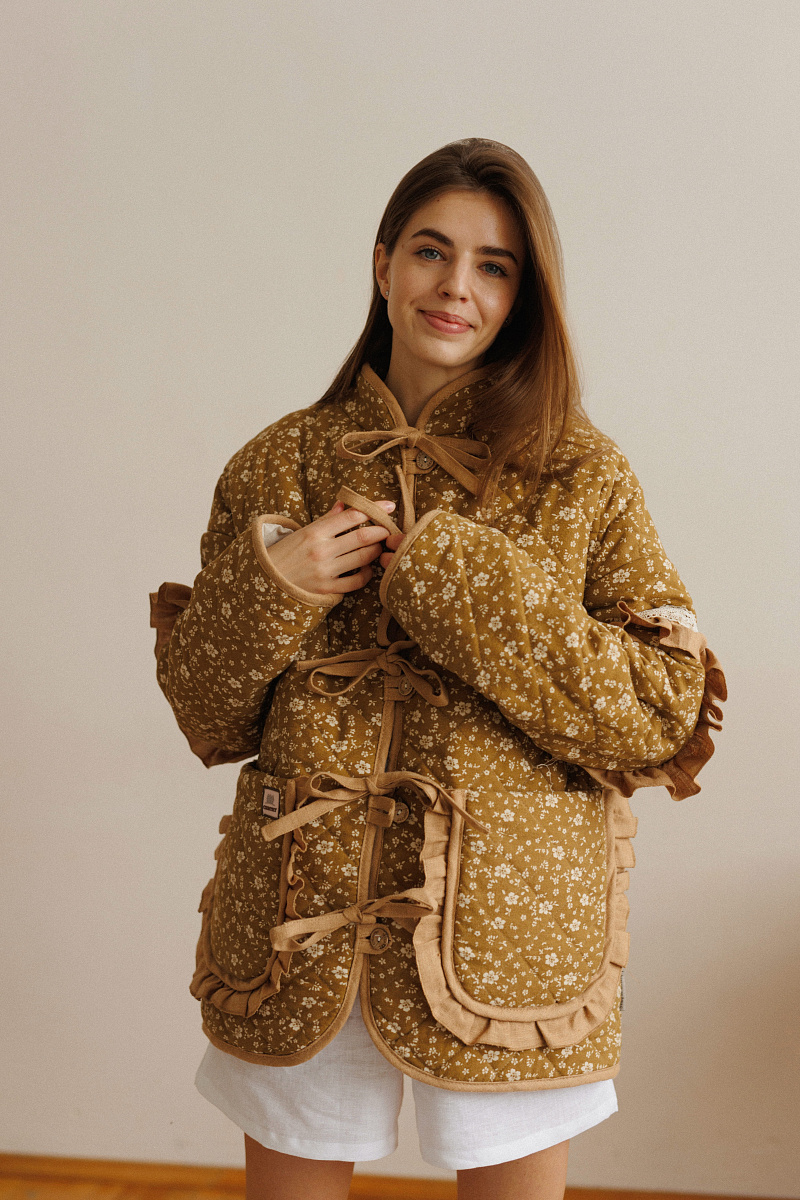 Под заказКимоно из мягкой фланели с утеплителем термолен. На карманах и рукавах очаровательные рюши из льна.
