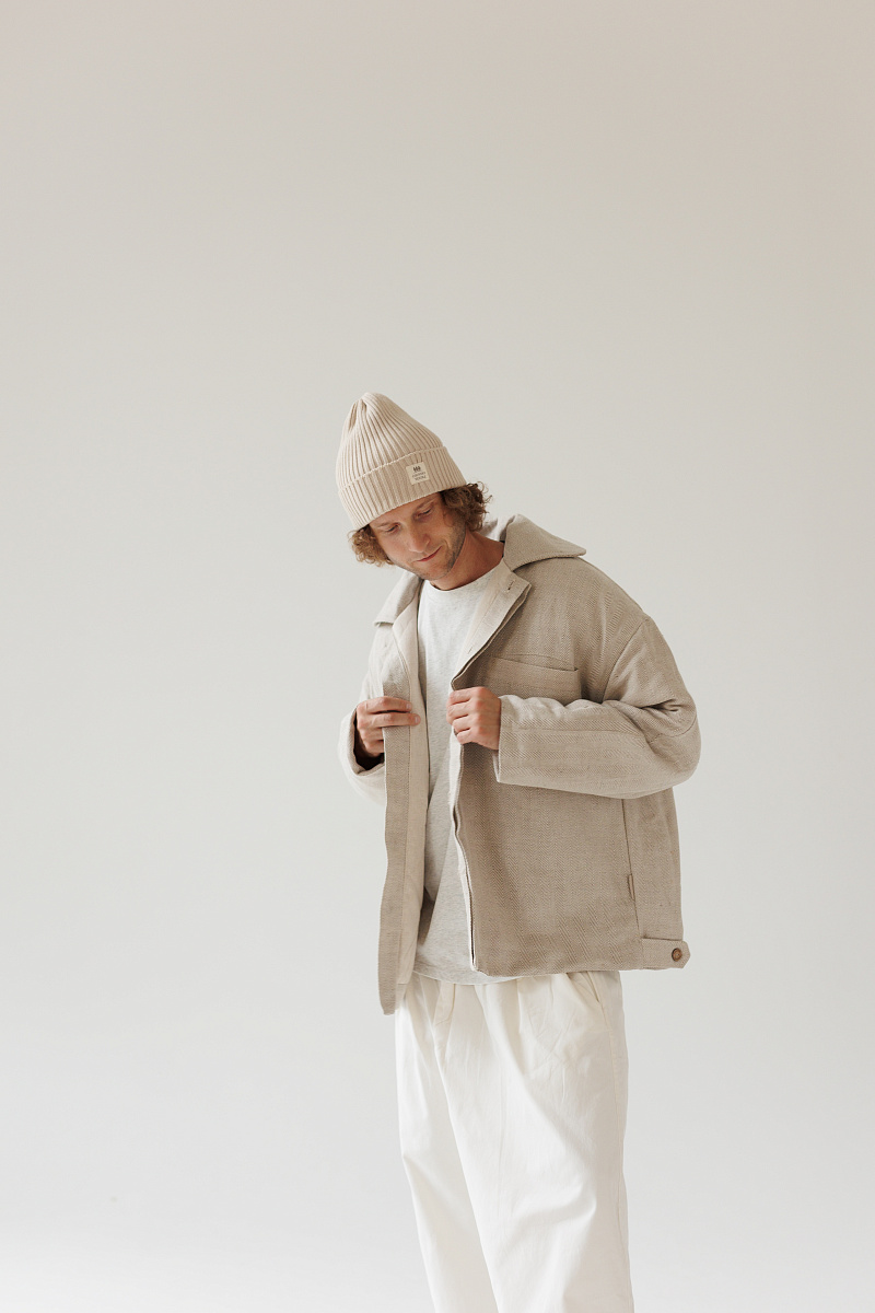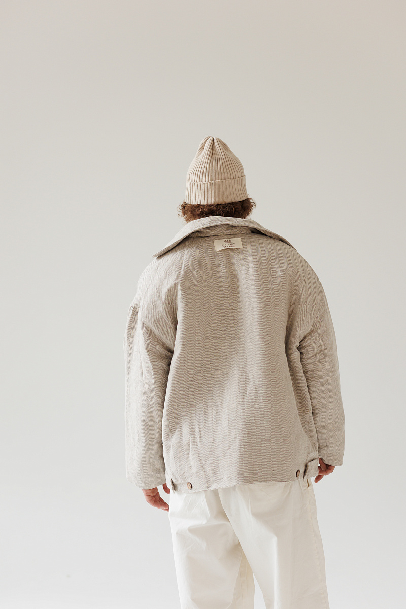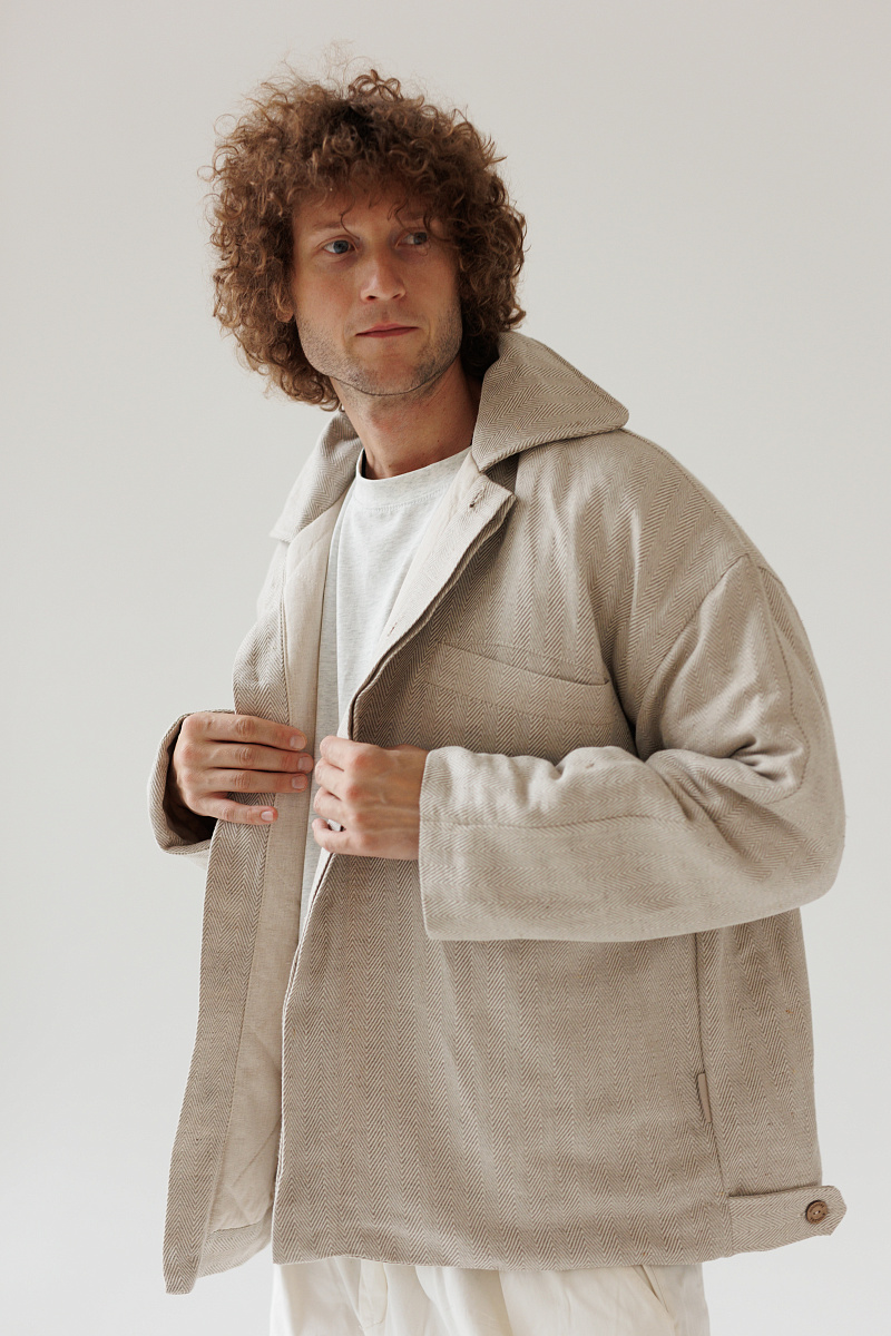 Состав верха: 100% уплотненный лен. Внутри мы используем утеплитель термольноволокно - это лён первичной обработки, который лучше всего сохраняет тепло. Подклад - 100% лен.