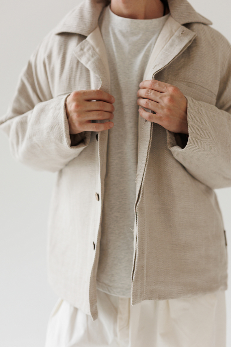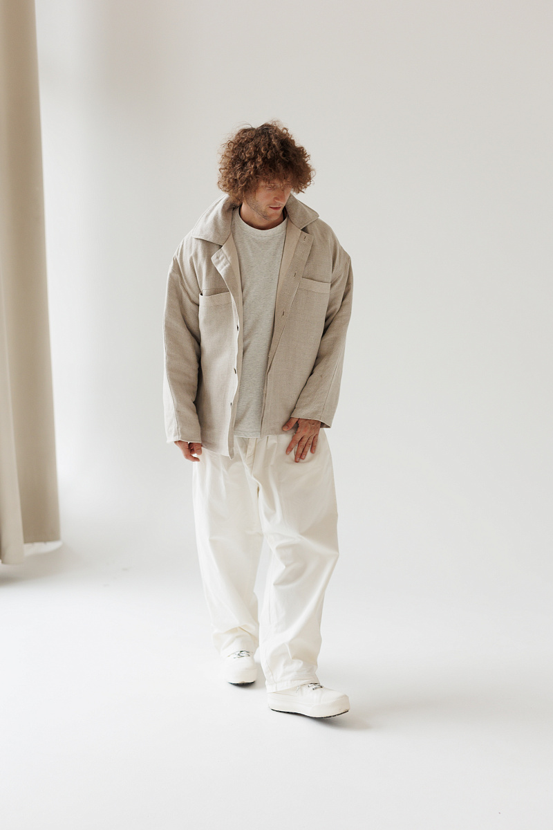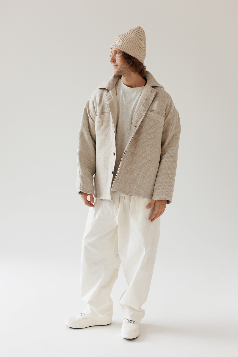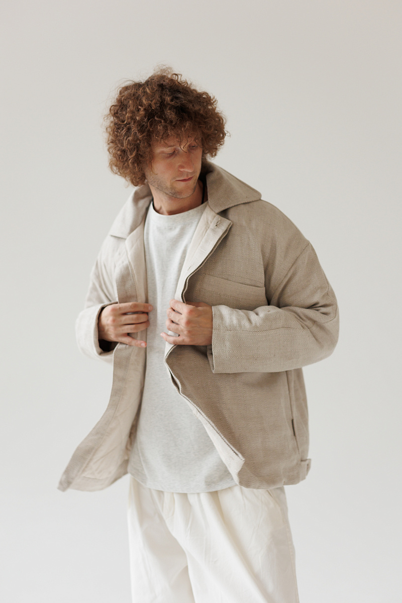 Состав верха: 100% уплотненный лен. Внутри мы используем утеплитель термольноволокно - это лён первичной обработки, который лучше всего сохраняет тепло. Подклад - 100% лен.
