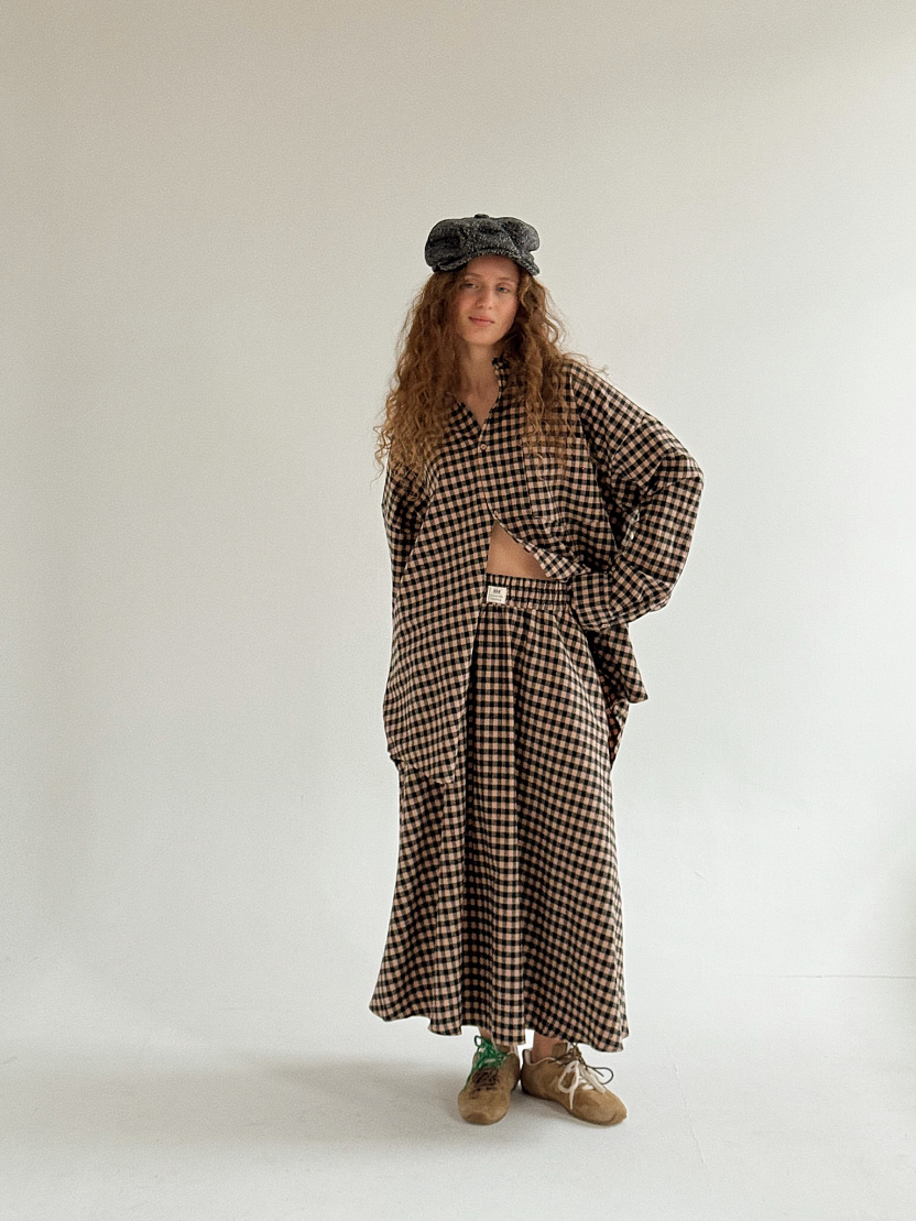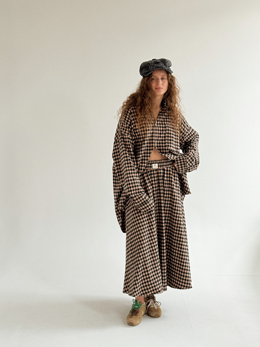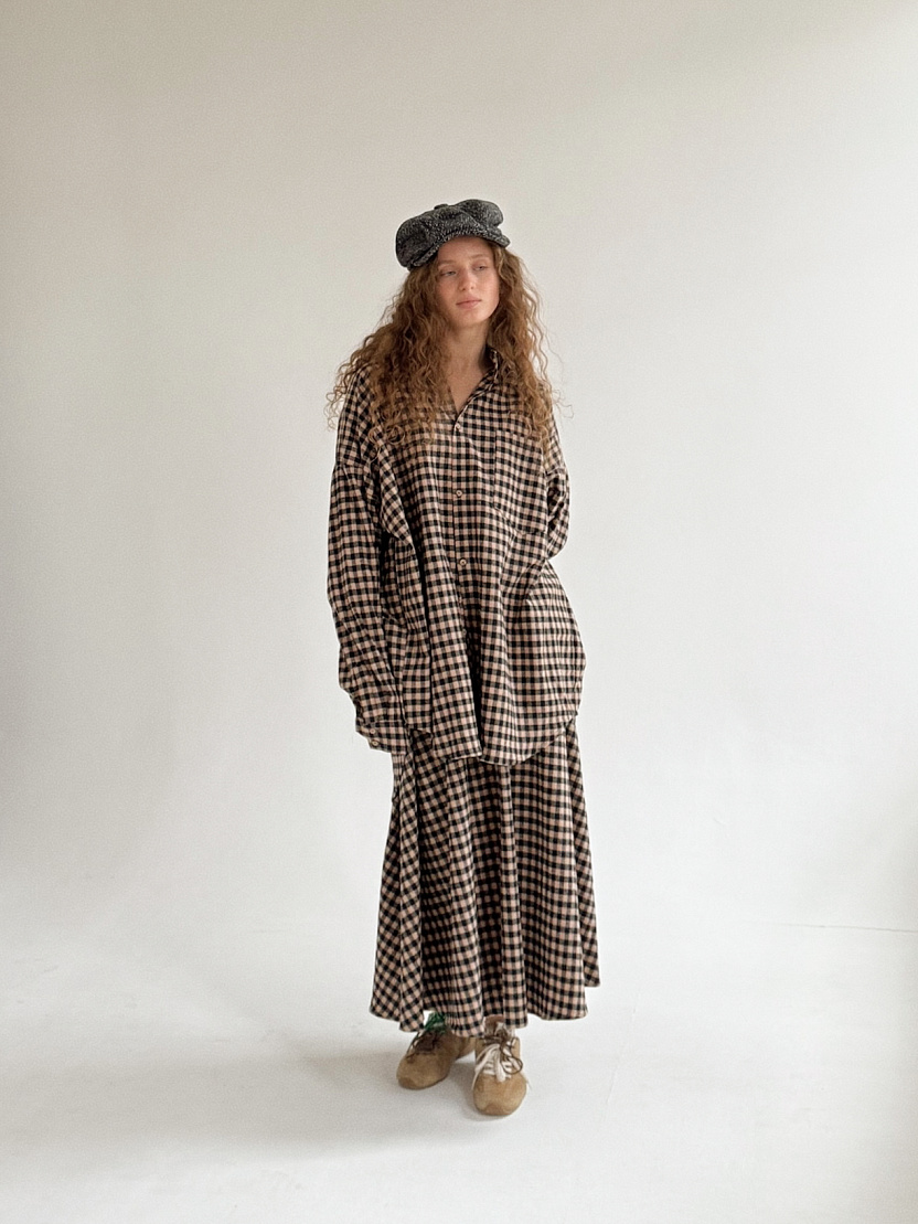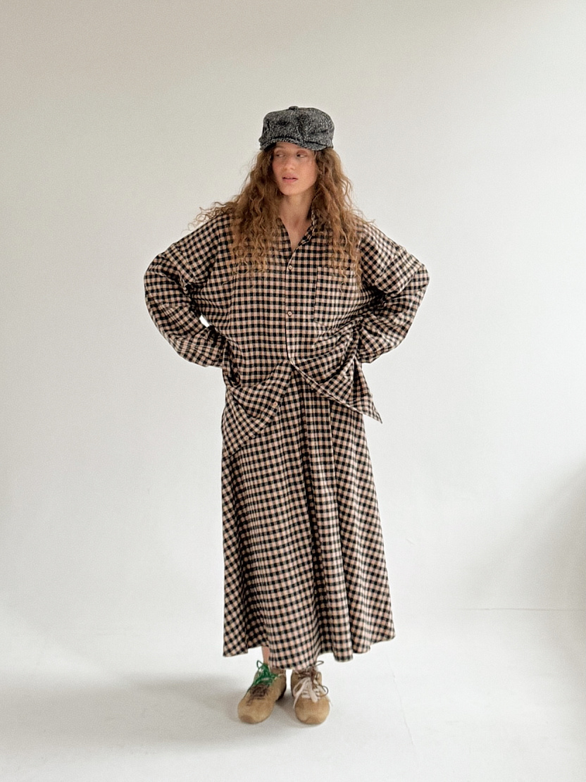 В таблице размеров указана общая длина изделия по спинке (без воротника). Длина рукава указана с учетом спущенного плеча.