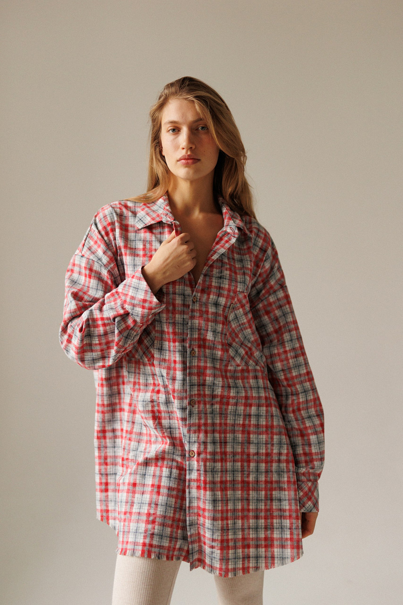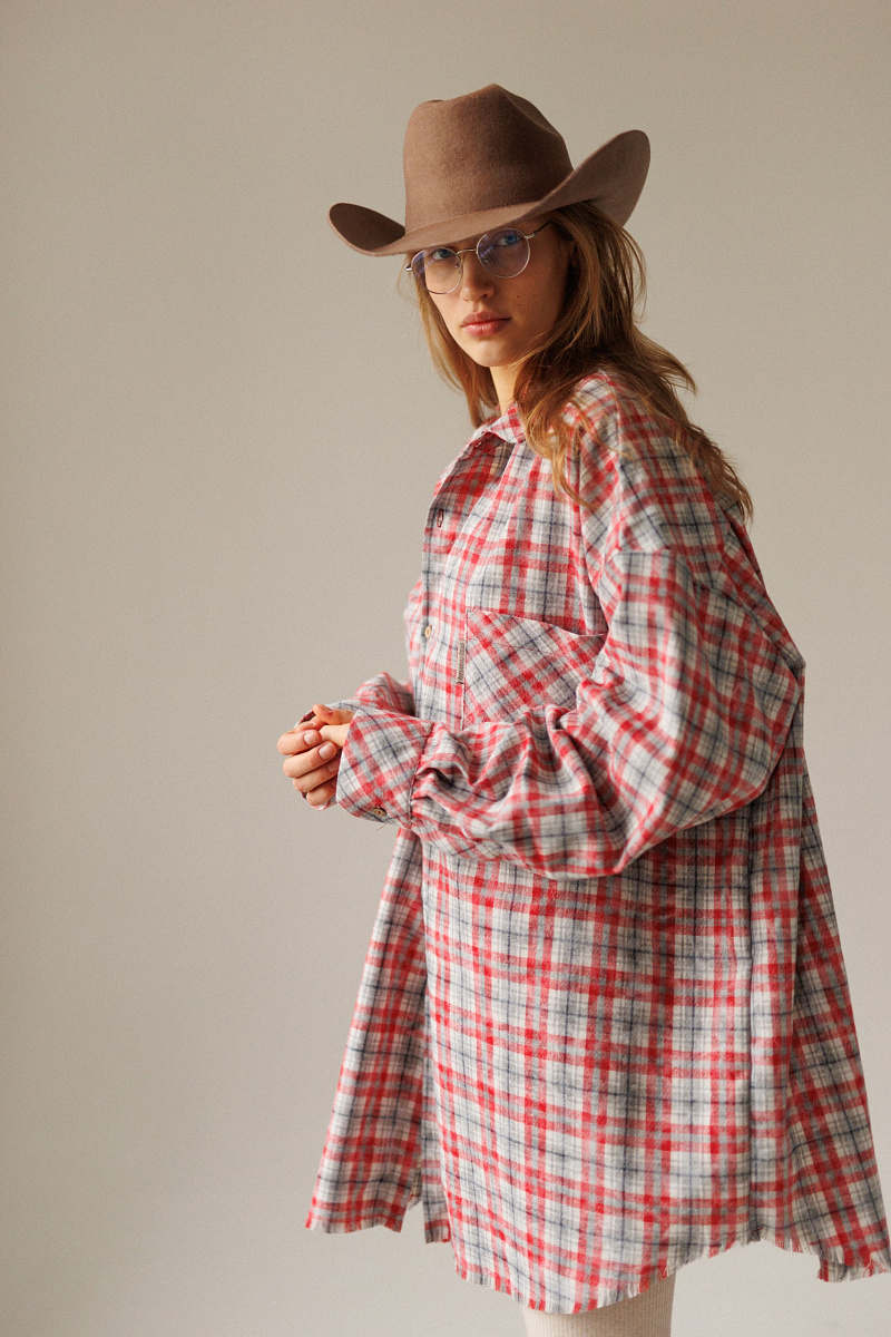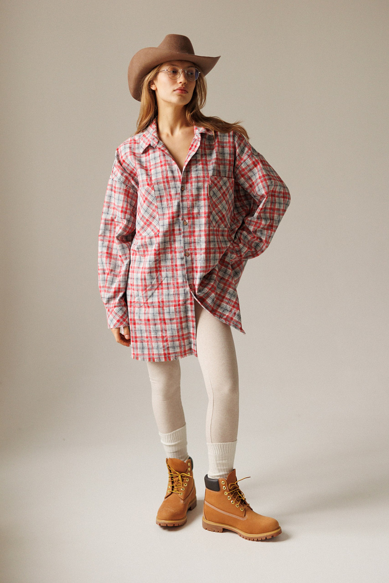 Крепление пуговиц на мужскую сторону. Бахрома идет по нижнему краю рубашки