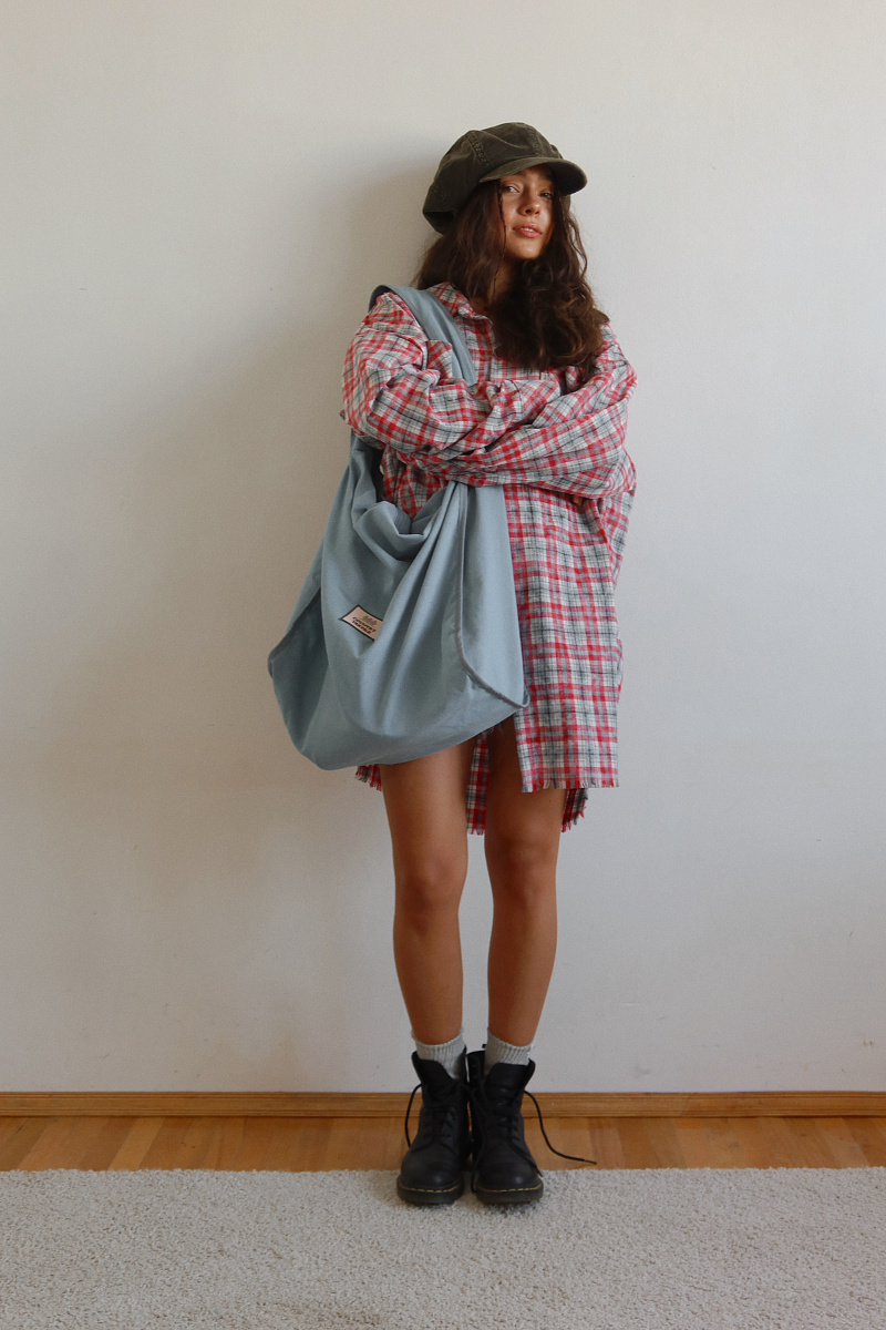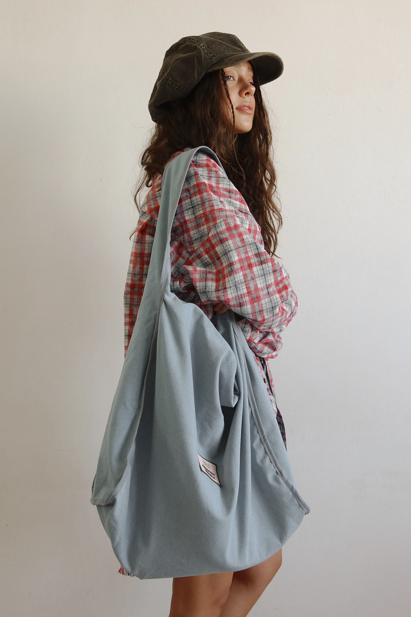 Широкий плечевой ремень, вместительное основное отделение на молнии, внутренний небольшой кармашек тоже на молнии.