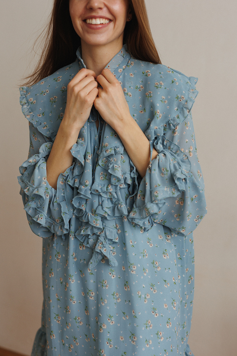 Шифон - это тонкий, полупрозрачный материал, который требует бережного обращения. Стирать его можно только руками в воде не более +30 ̊ С, применяя предназначенные для деликатных тканей средства. После стирки – легкий ручной отжим