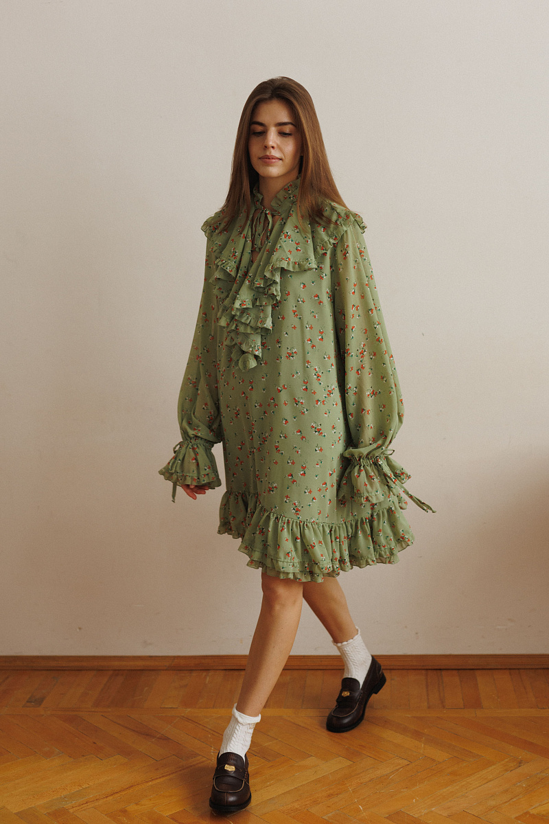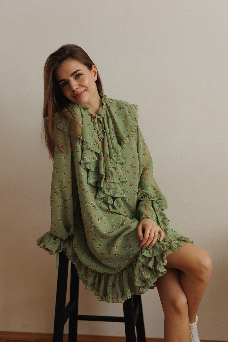 Внутри платья – штапель, а сверху – летящий шифон.