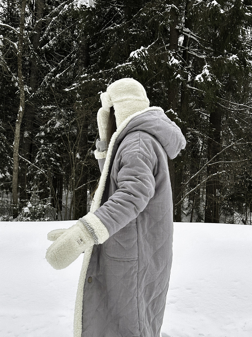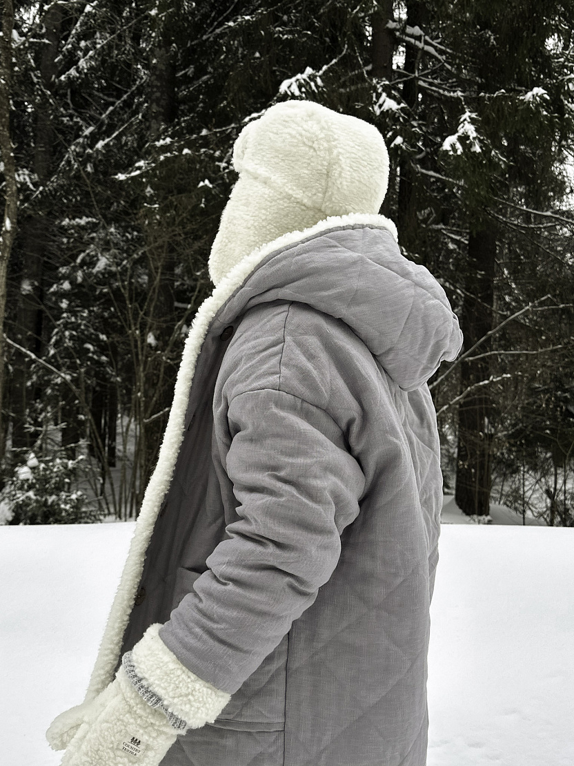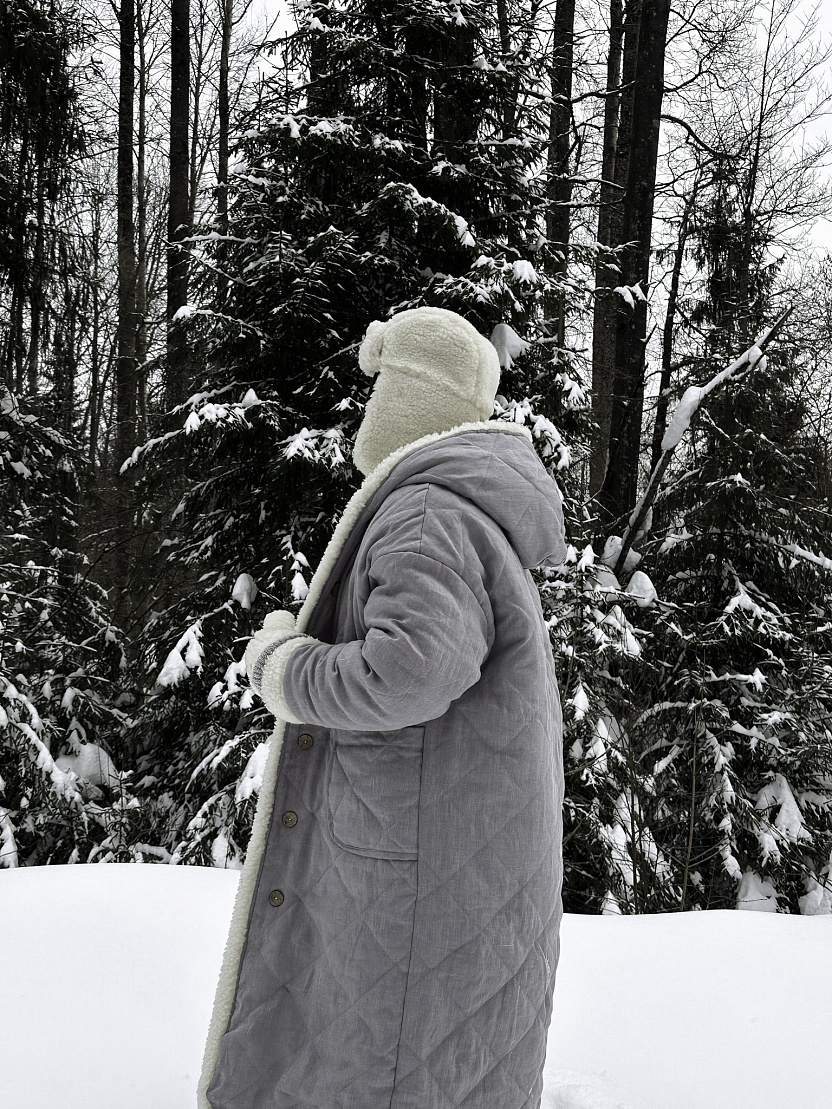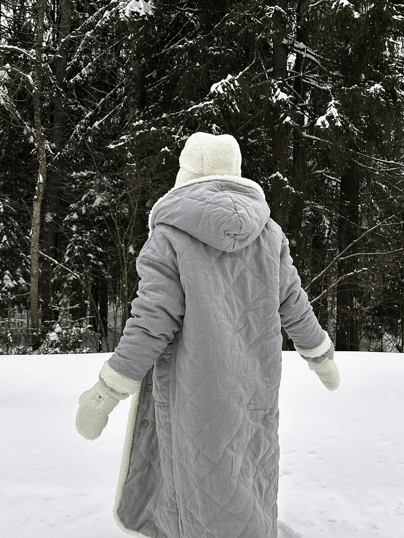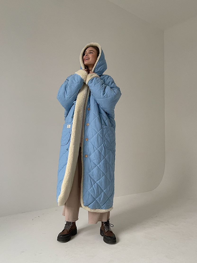 Утеплённое кимоно с овечьей шерстью удлинённое с капюшоном
