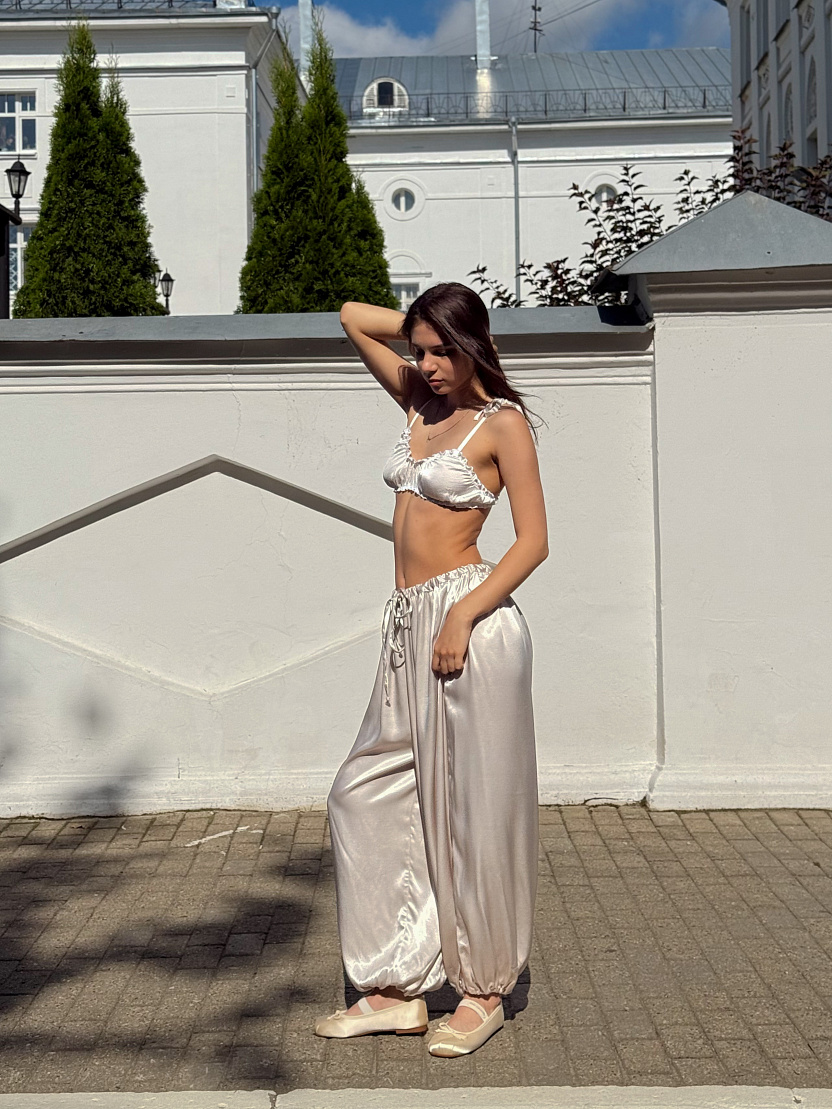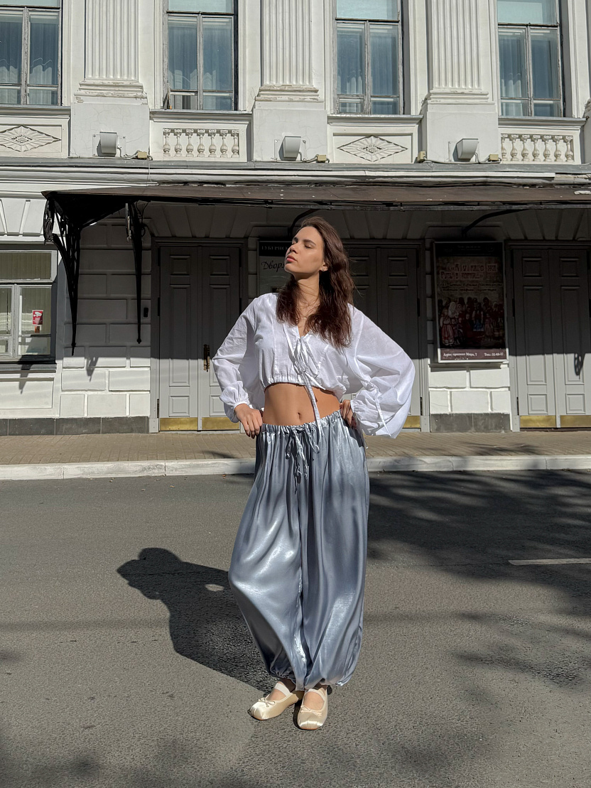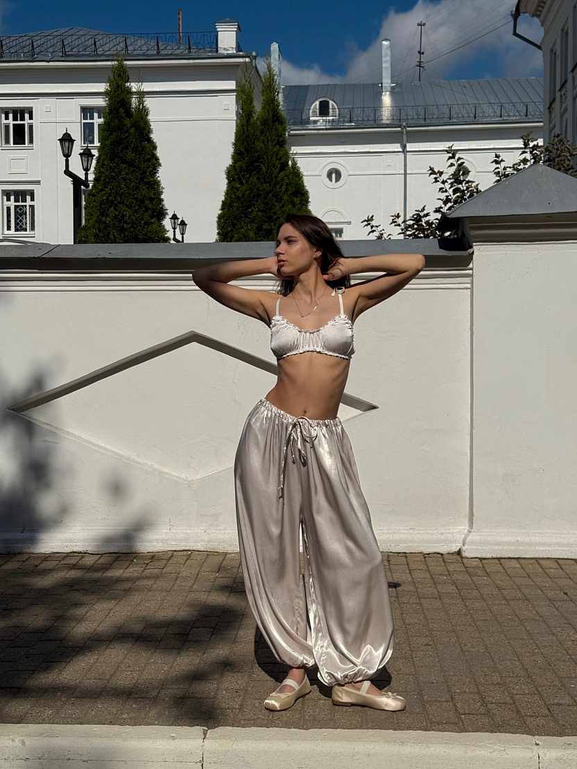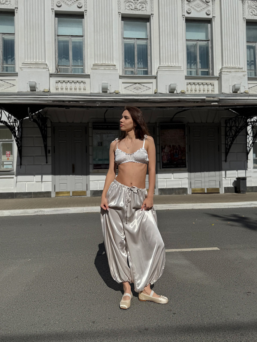 Брюки-баллоны из нежного струящегося шелка.