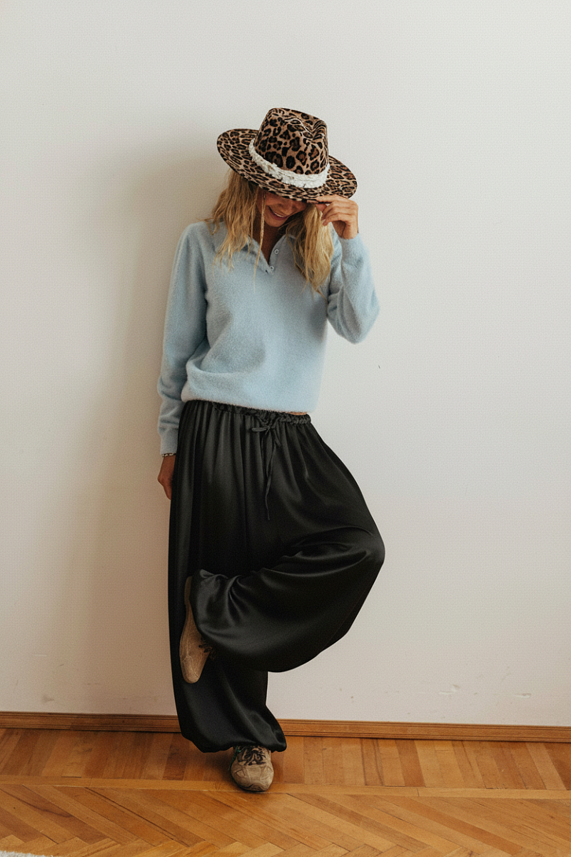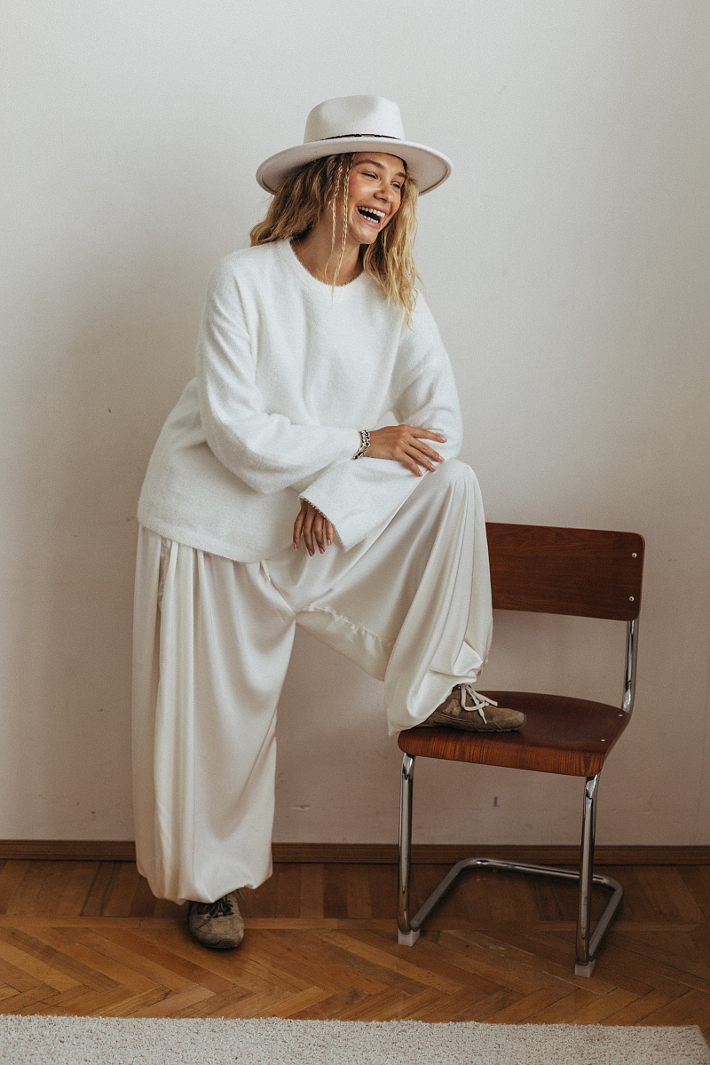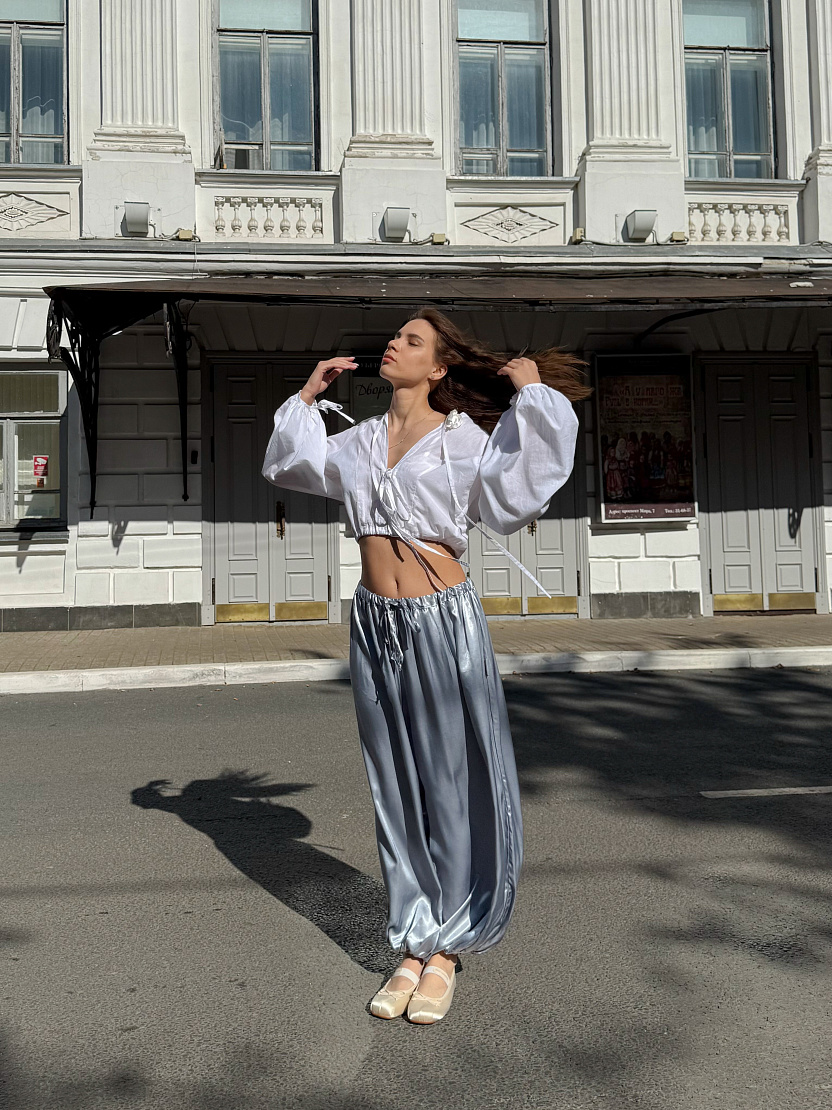 Брюки-баллоны из нежного струящегося шелка.