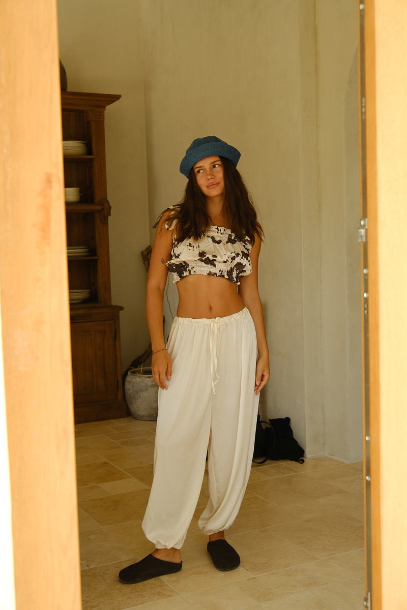 Брюки-баллоны из нежного струящегося шелка.