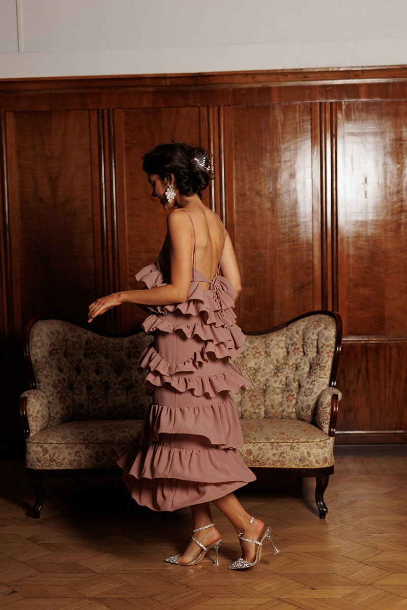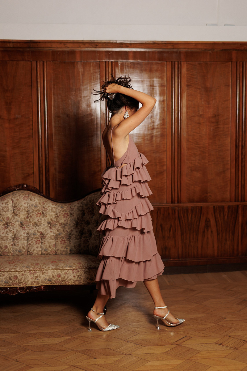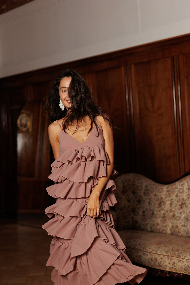 Платье струится в каждом движении, делая образ совершенно незабываемым.