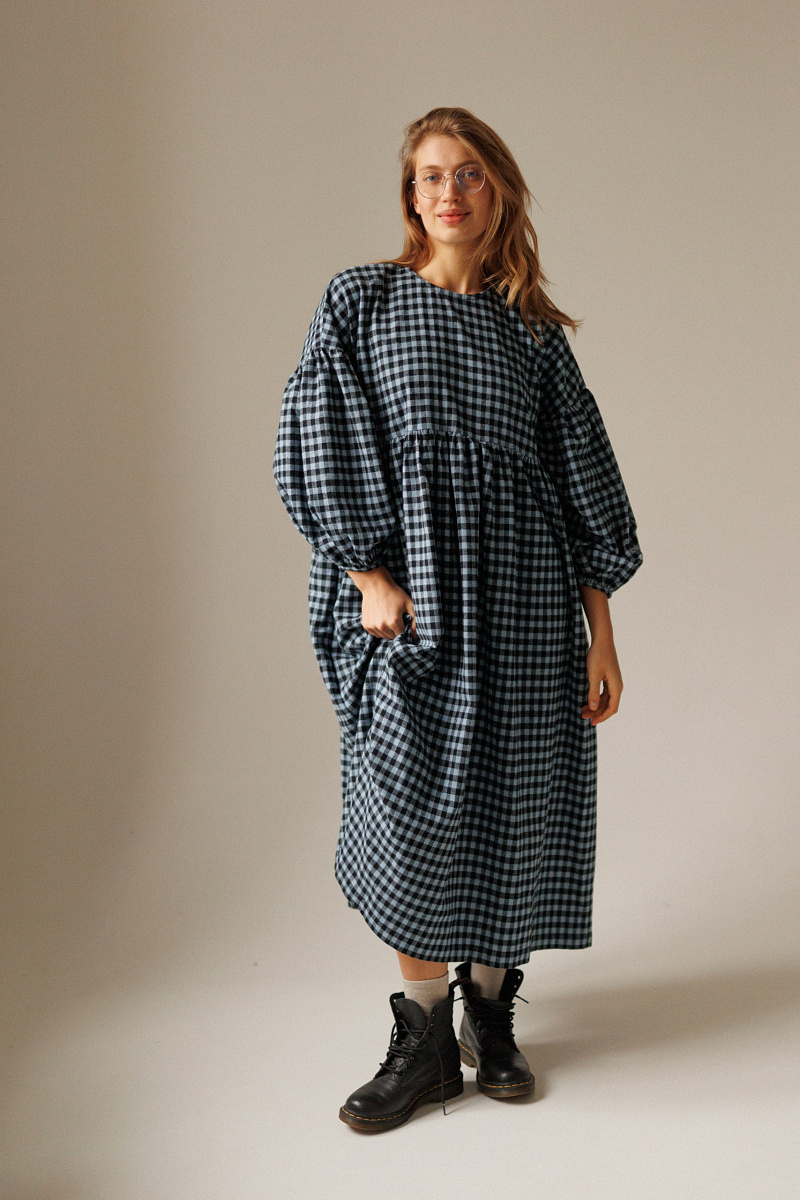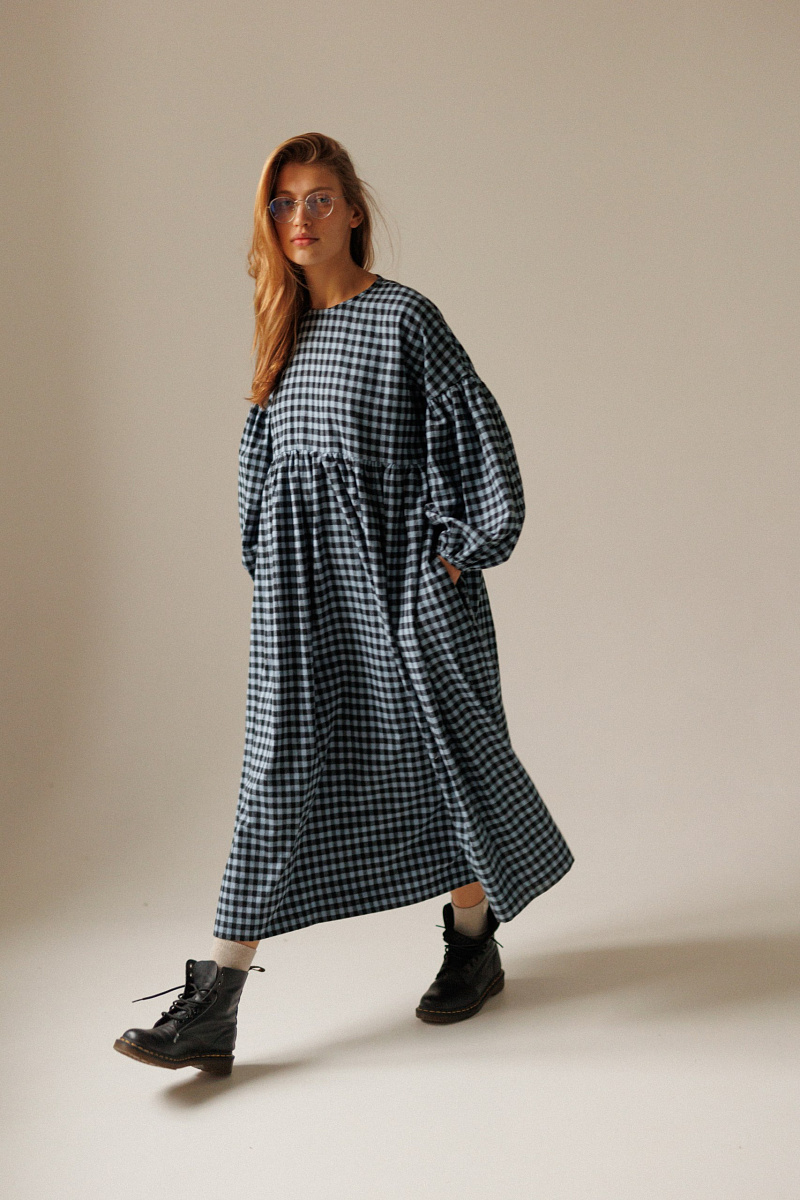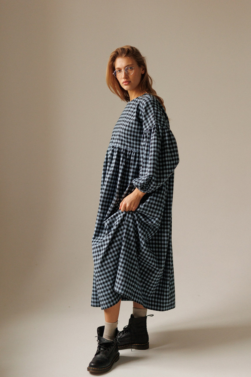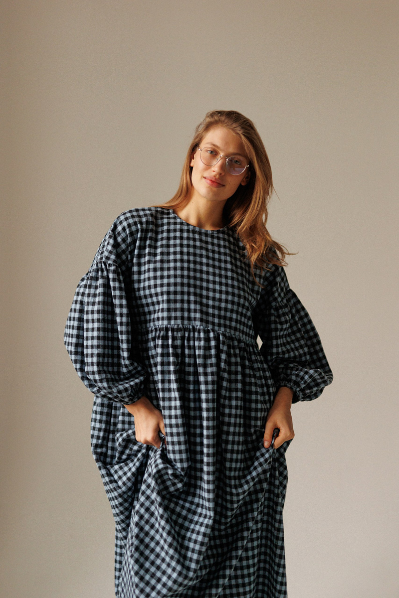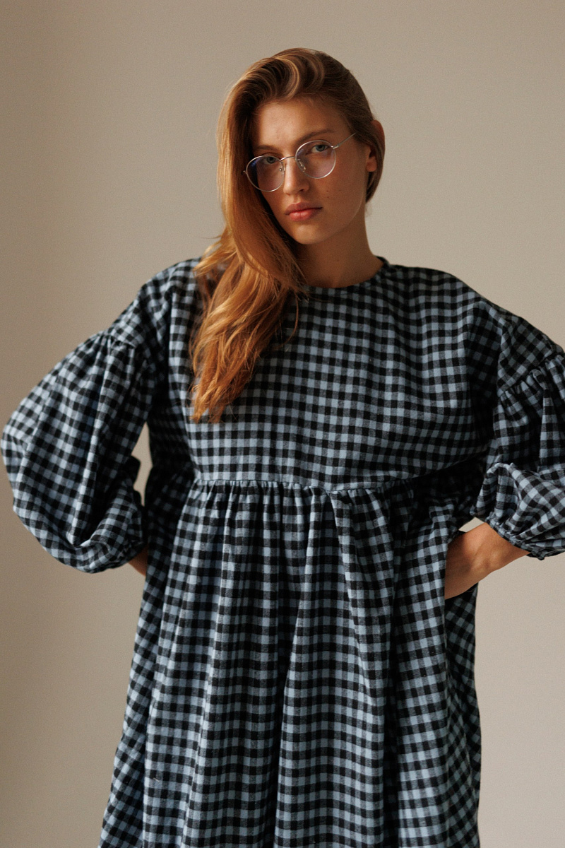 Под заказПлатье фасона оверсайз выполнено из мягкой фланели в клетку. Сзади на спинке имеются пуговки.