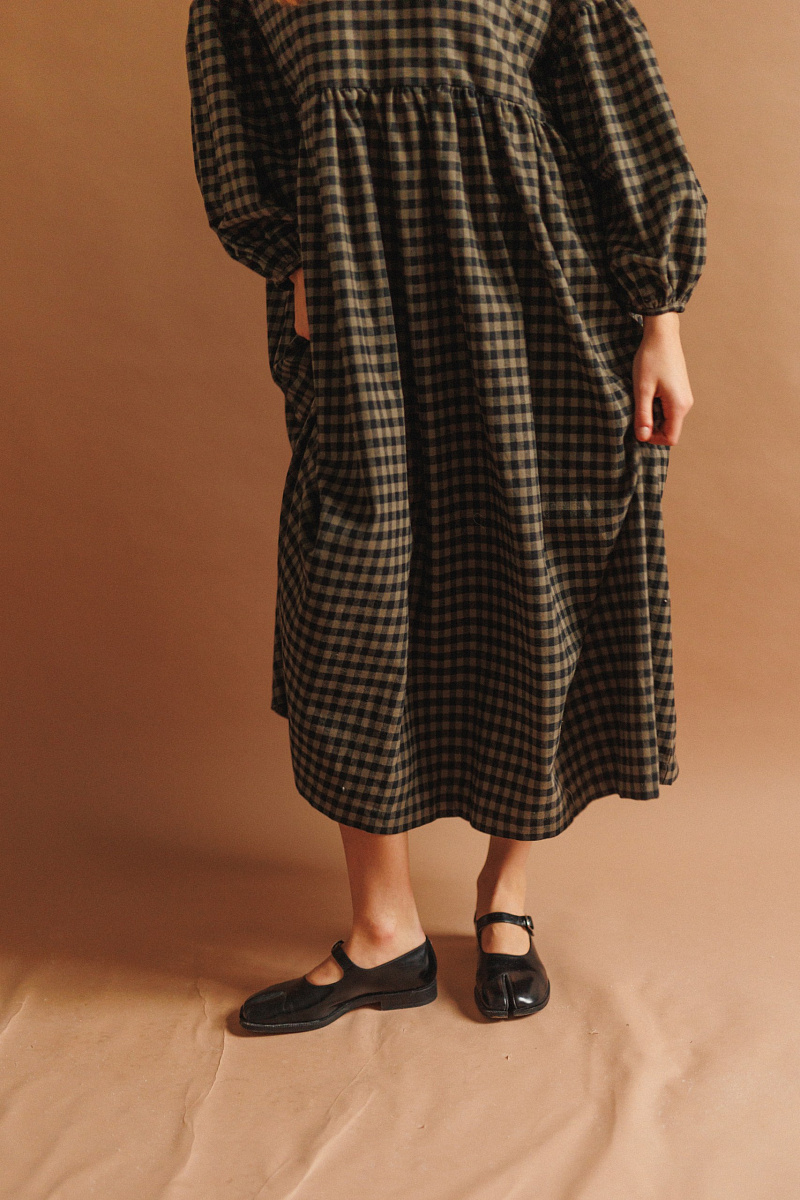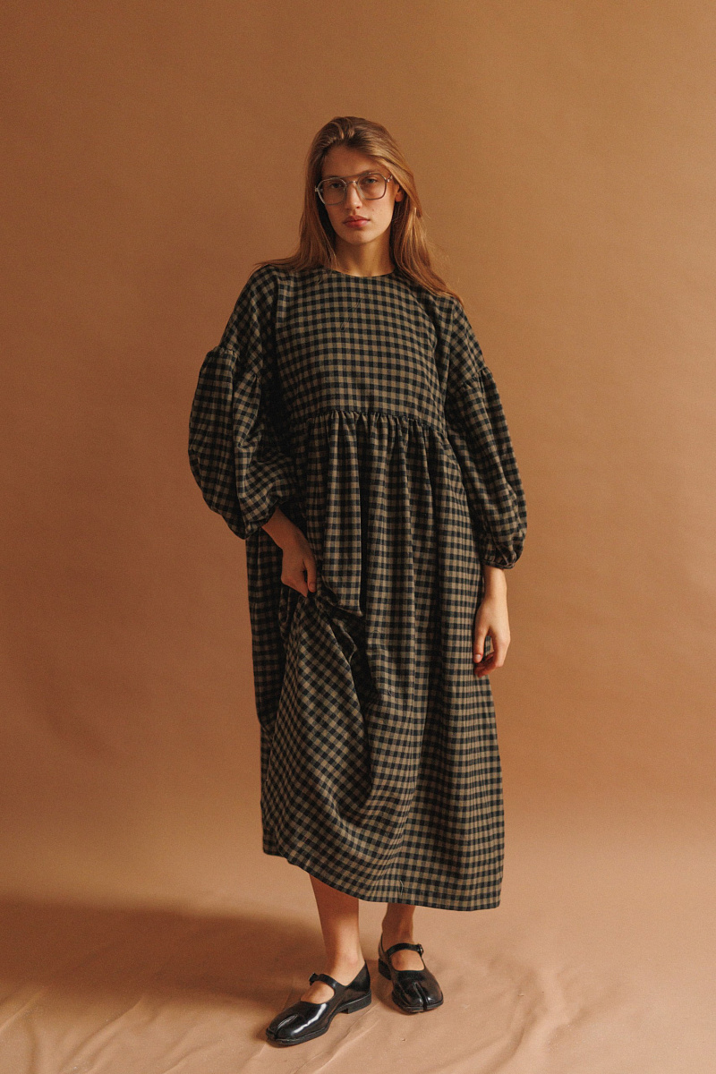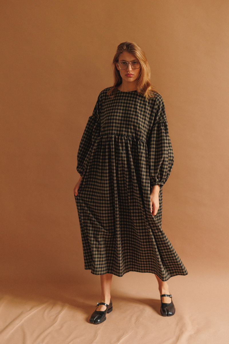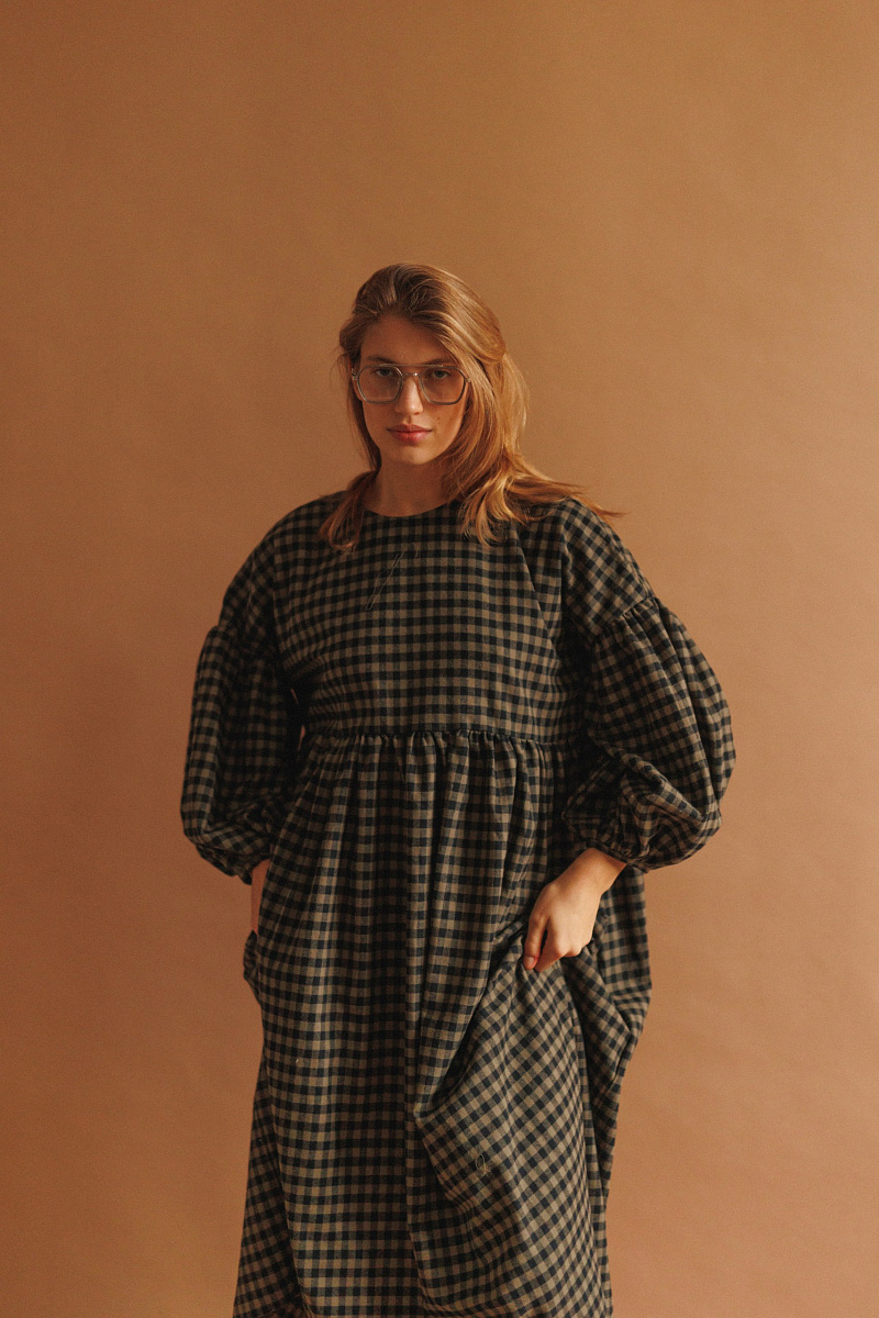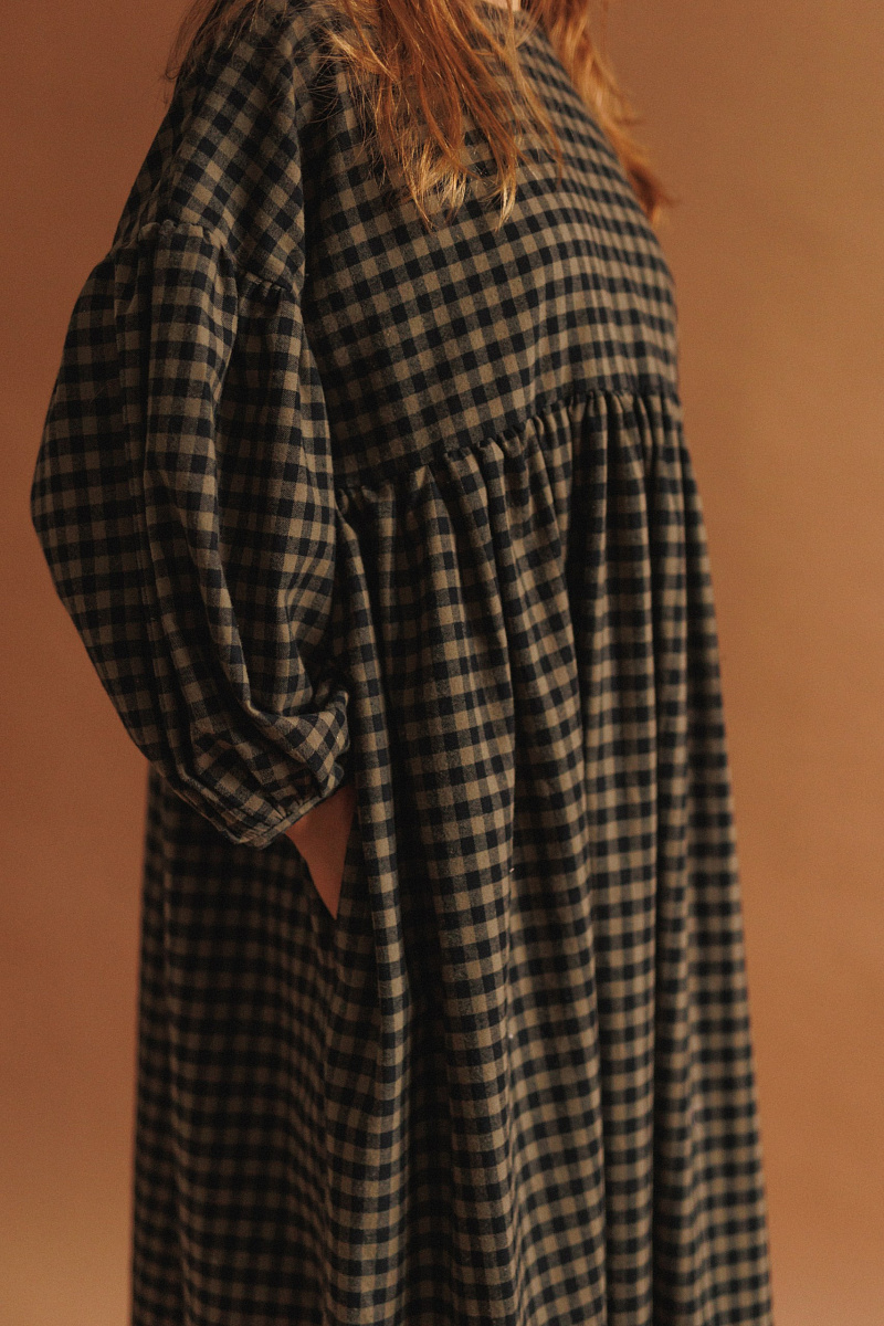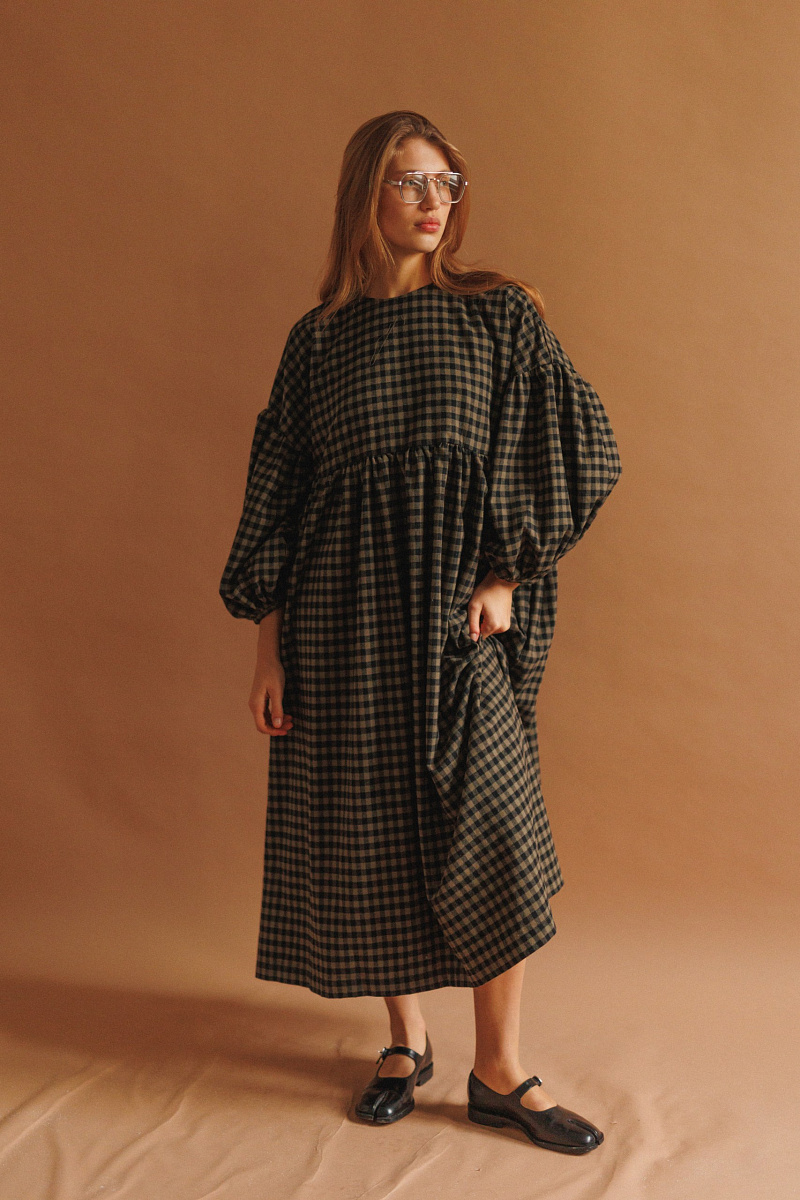 Под заказПлатье фасона оверсайз выполнено из мягкой фланели в клетку. Сзади на спинке имеются пуговки.
