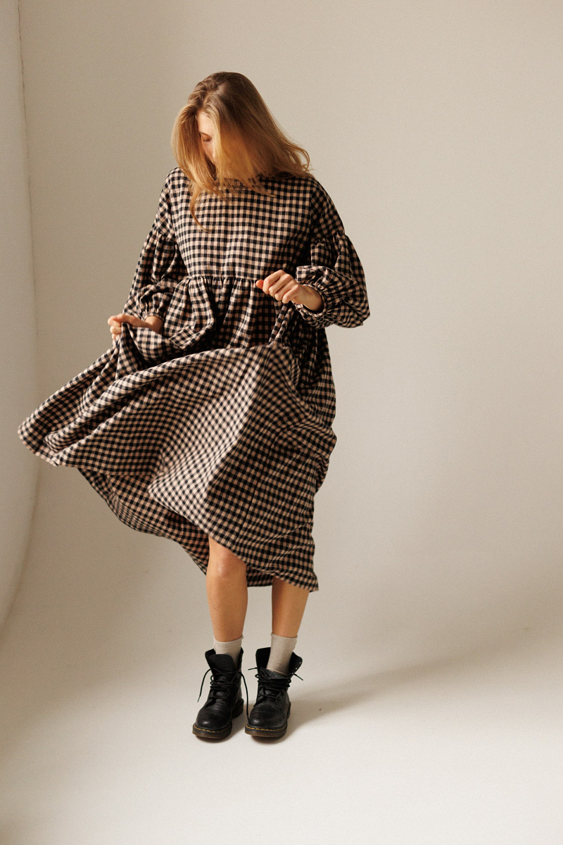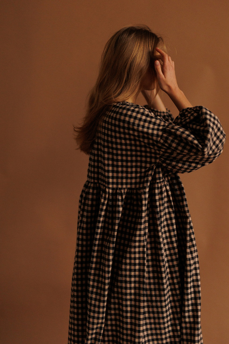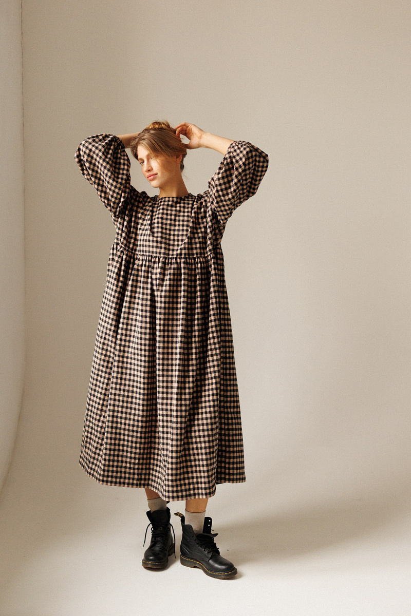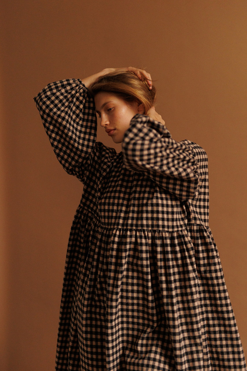 Под заказПлатье фасона оверсайз выполнено из мягкой фланели в клетку. Сзади на спинке имеются пуговки.