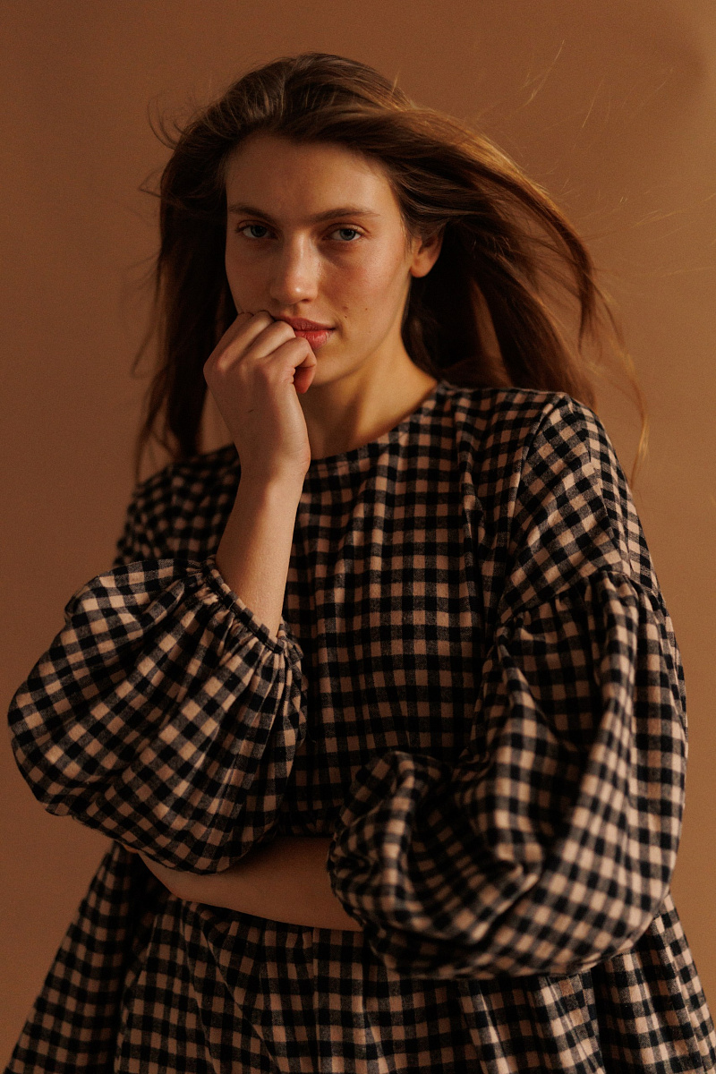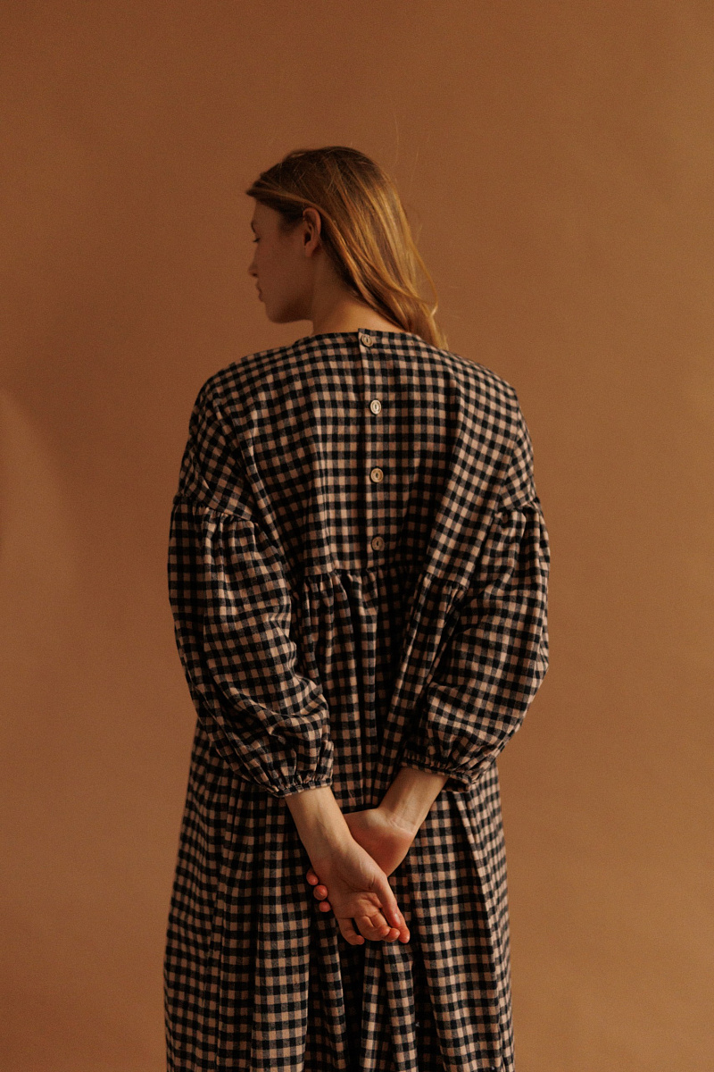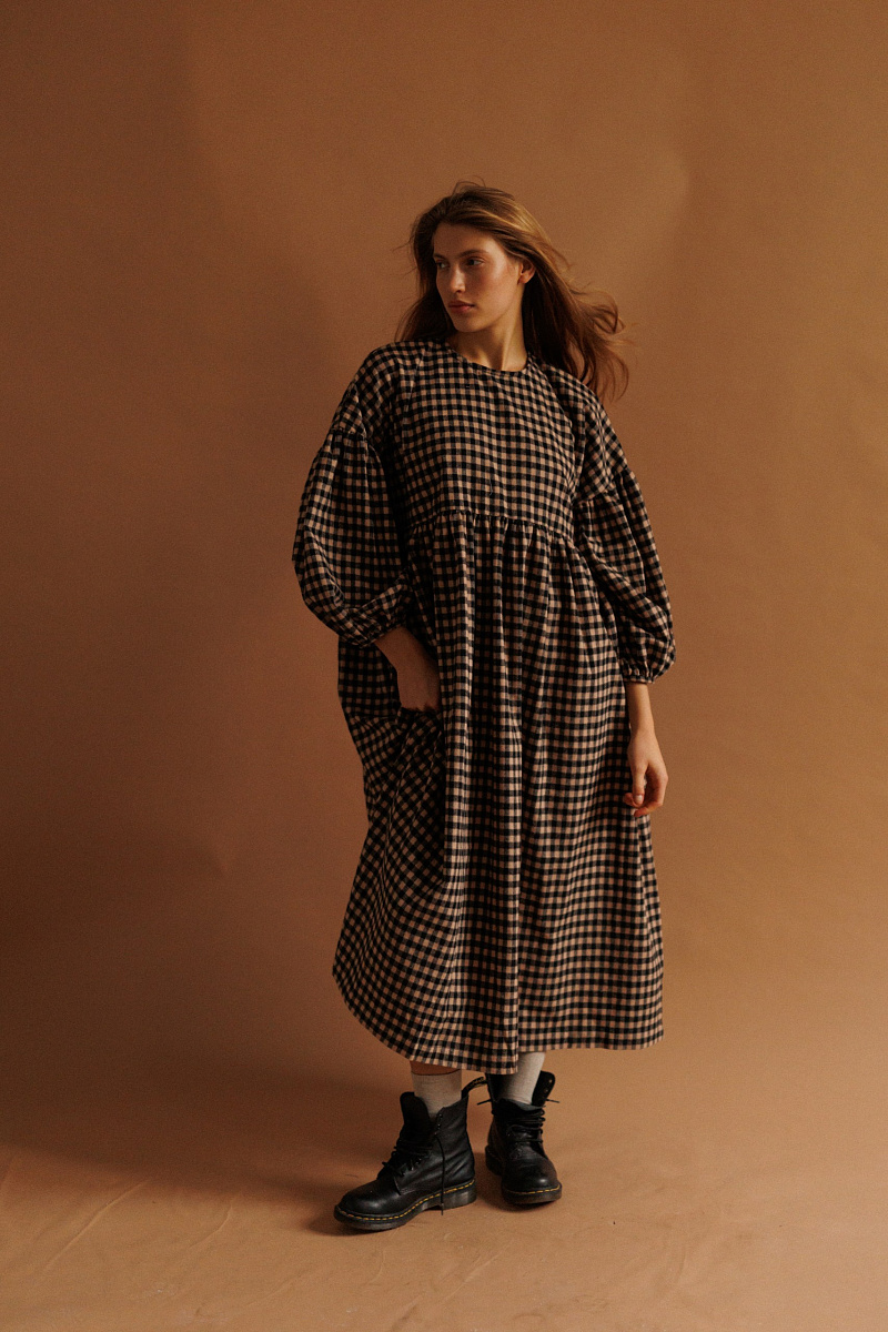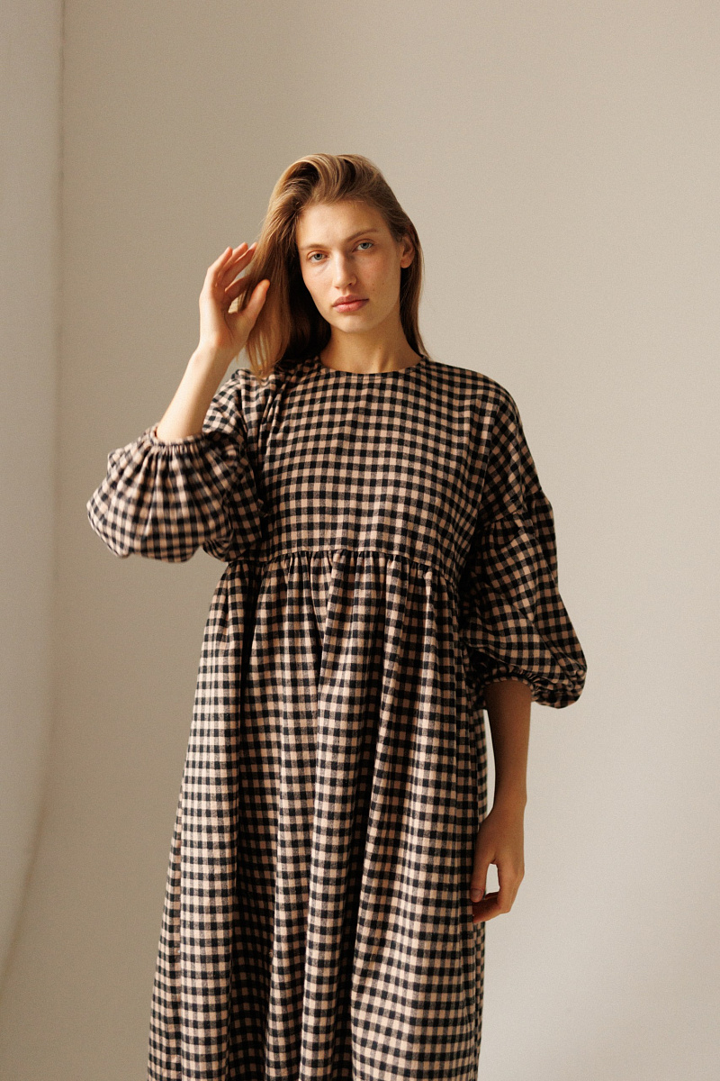 Под заказПлатье фасона оверсайз выполнено из мягкой фланели в клетку. Сзади на спинке имеются пуговки.