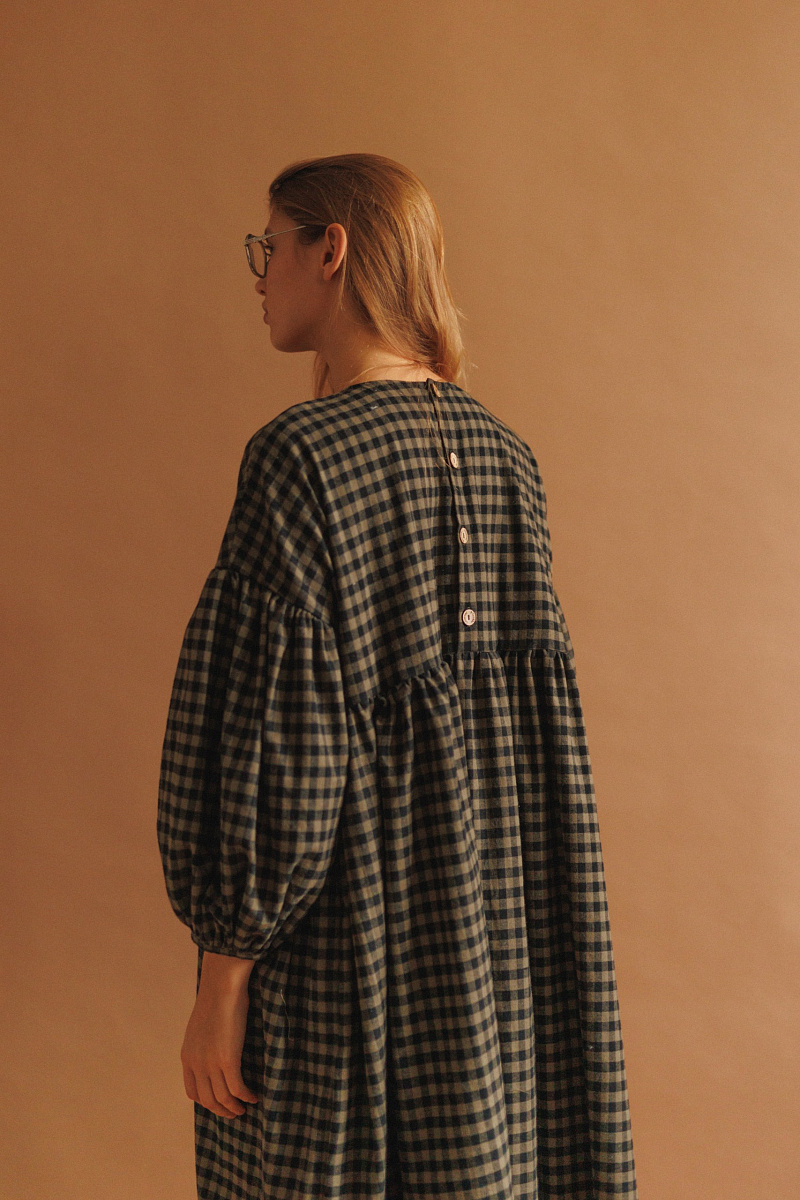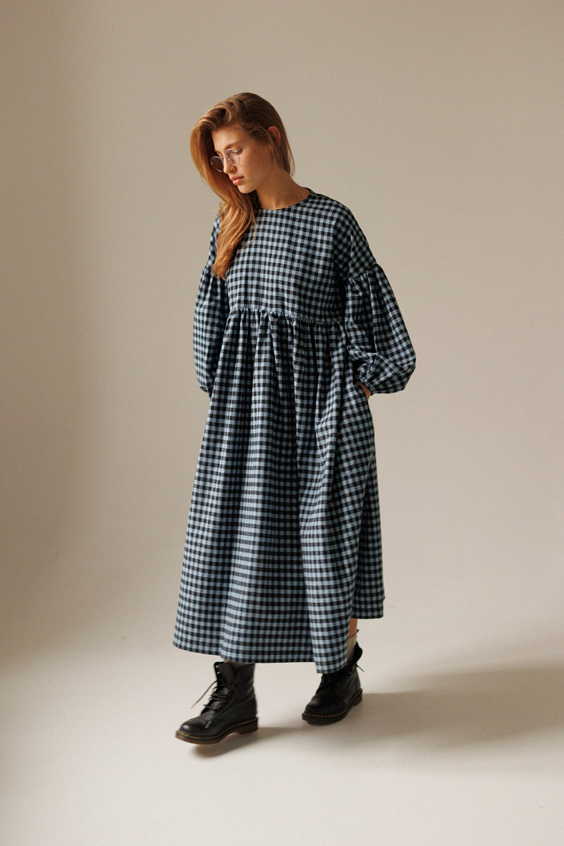 Под заказПлатье фасона оверсайз выполнено из мягкой фланели в клетку. Сзади на спинке имеются пуговки.