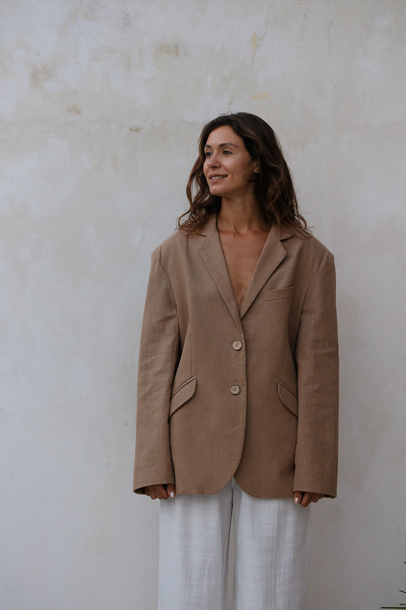 Скошенные карманы, вертикальные вытачки.