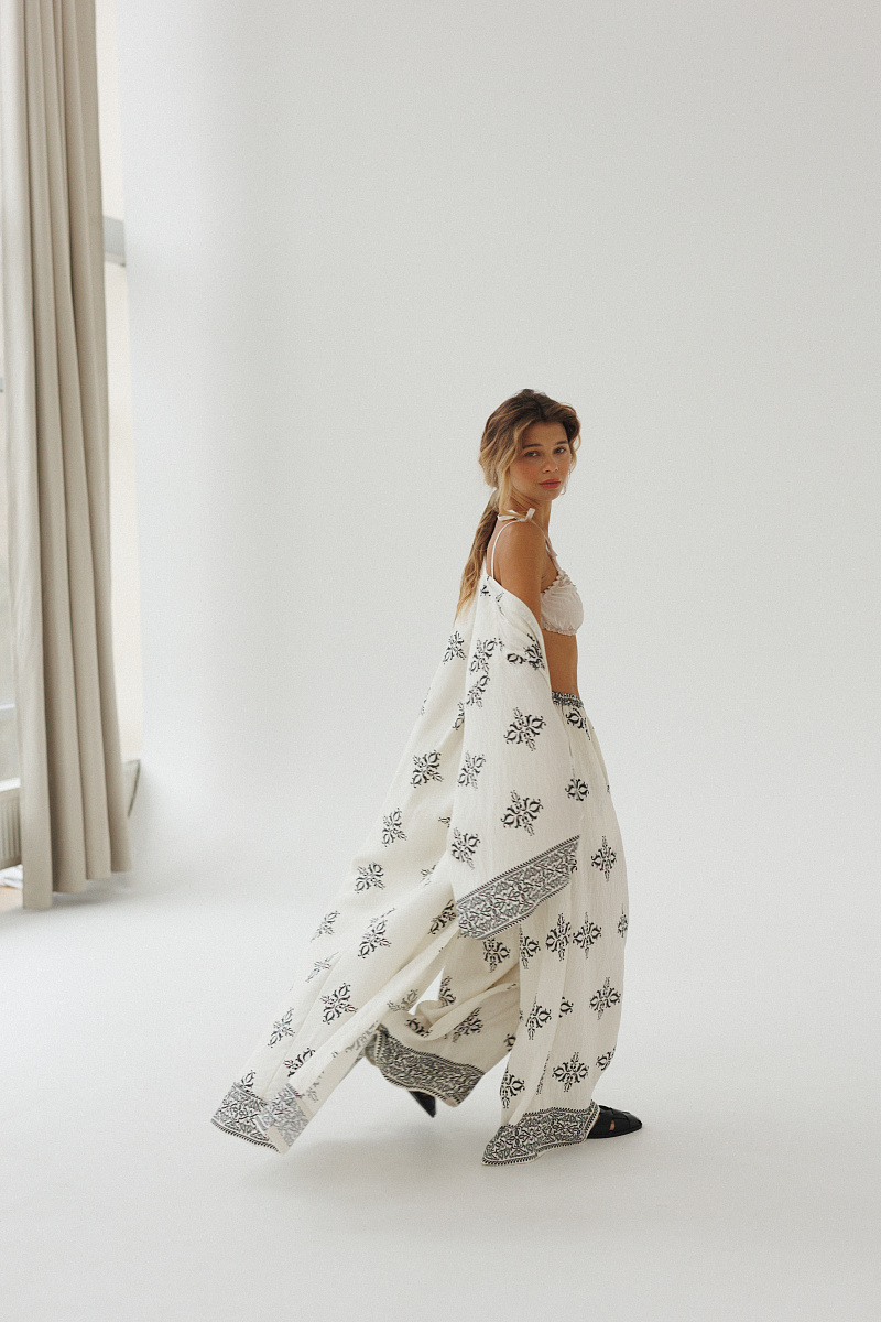 Под заказИзысканный принт, вдохновенный марокканскими орнаментами, придаёт кимоно особый характер и эстетику, а мягкая вискоза нежно струится и обволакивает кожу.