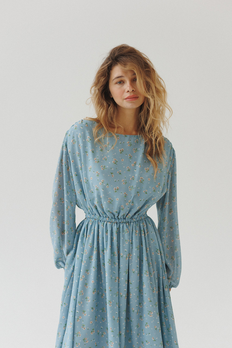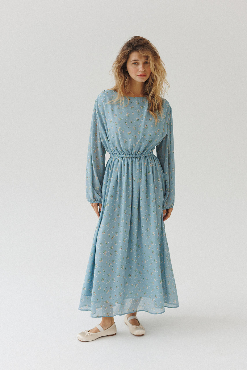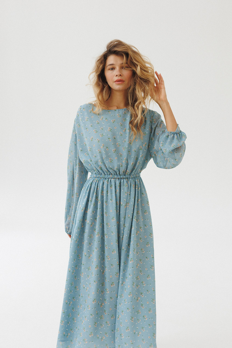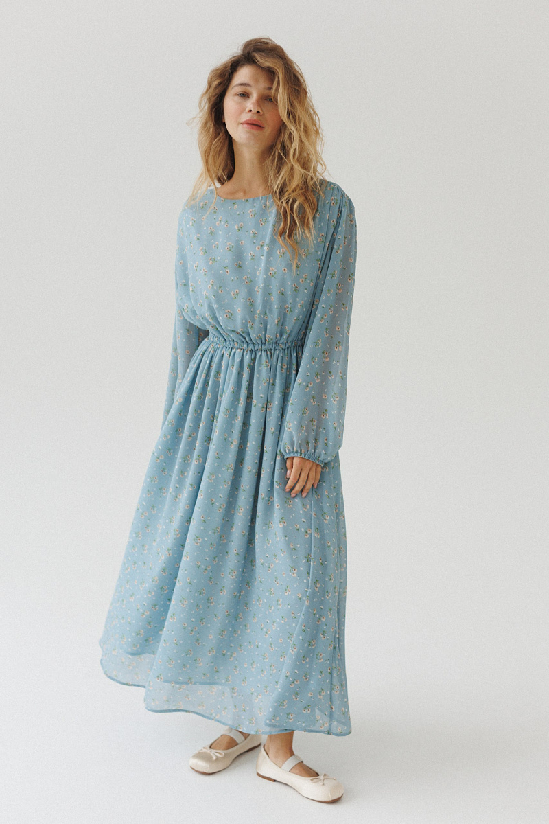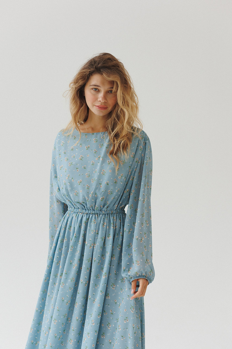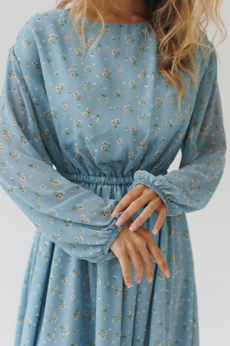Под заказПлатье «Волшебная Луна» из цветочного шифона цвета пыльного неба