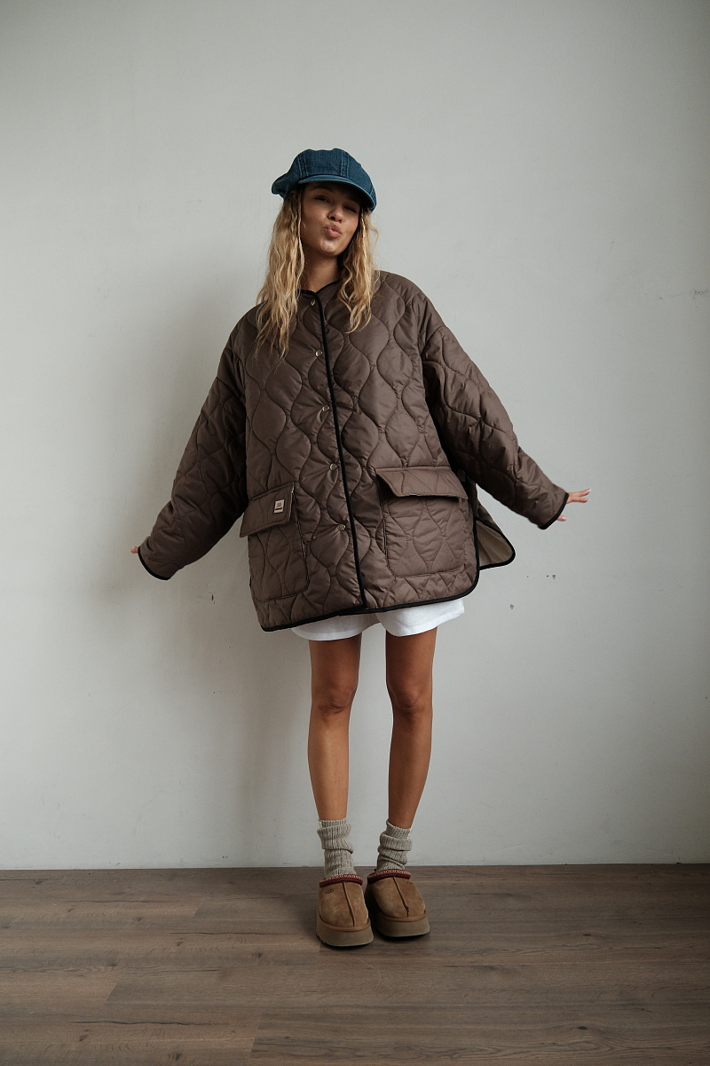 Изделие имеет спущенный рукав и фасон oversize. Длина рукава указана от середины плеча.