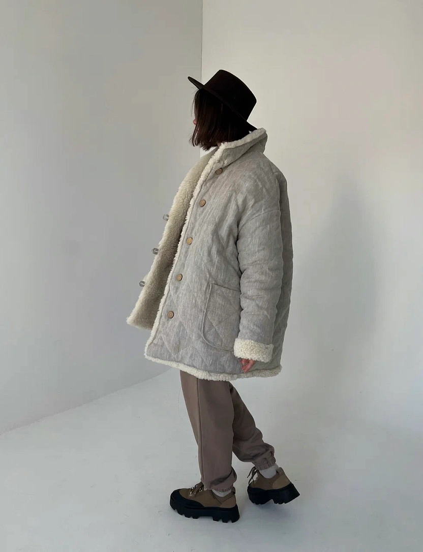 Кимоно двустороннее. Вы самостоятельно выбираете оттенок льна и меховой стороны из предложенной палитры.