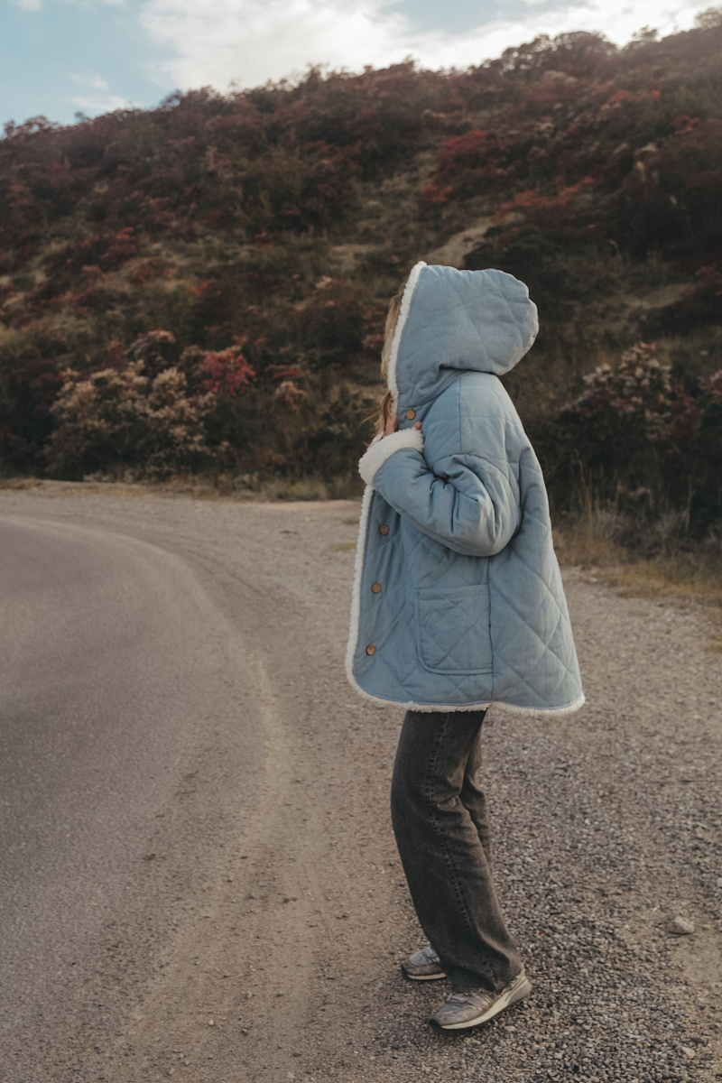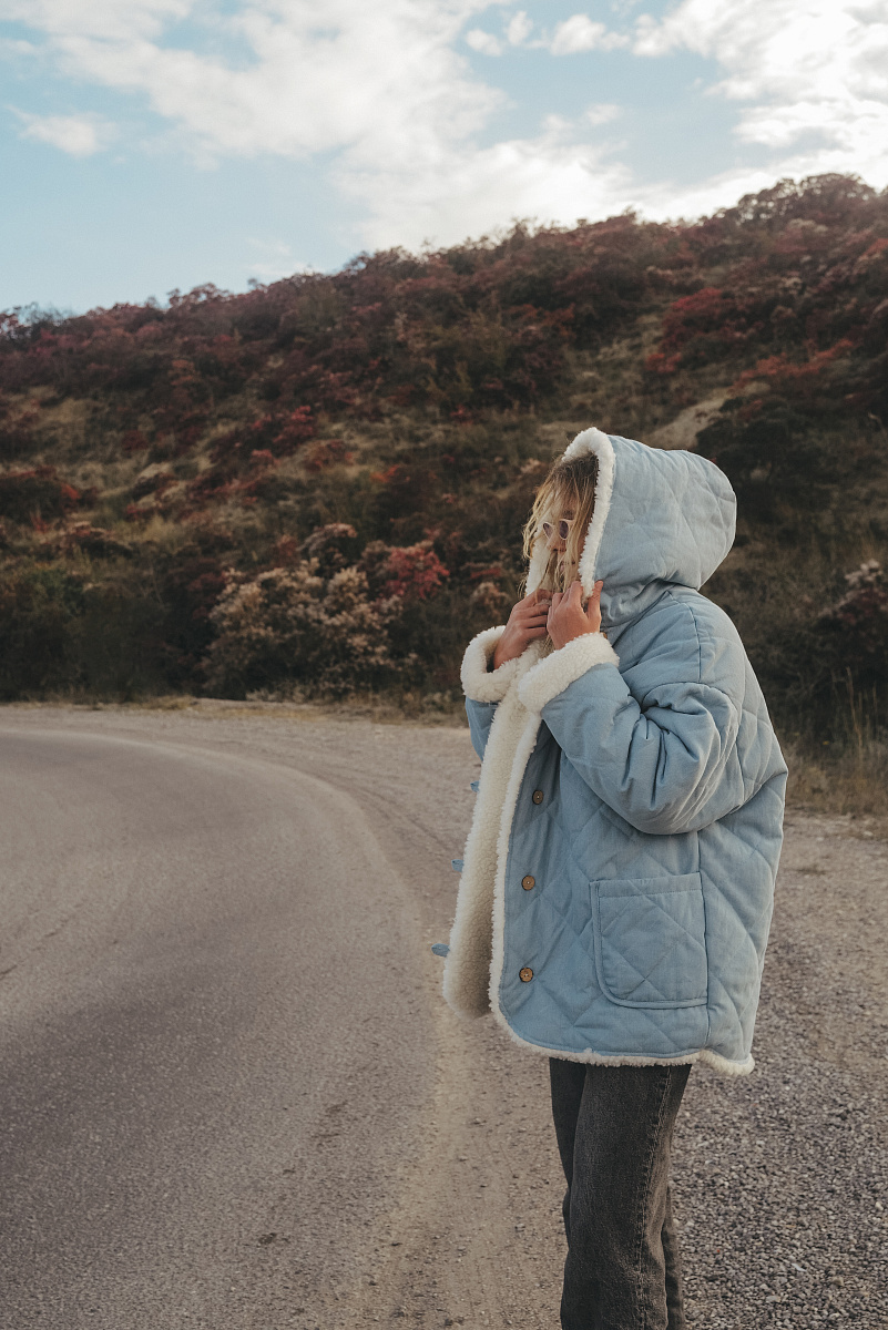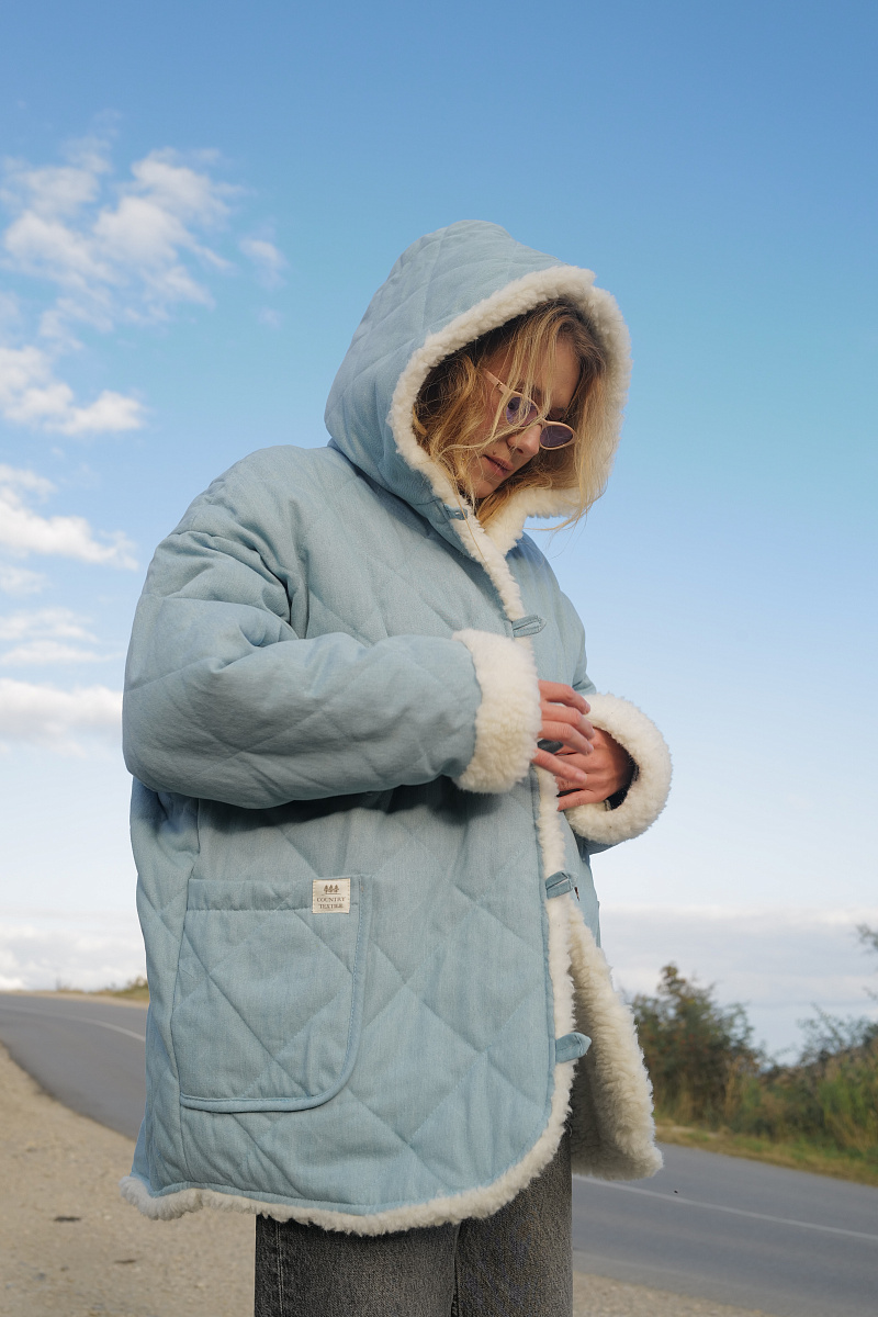 Кимоно из овечьей шерсти с капюшоном Деним
