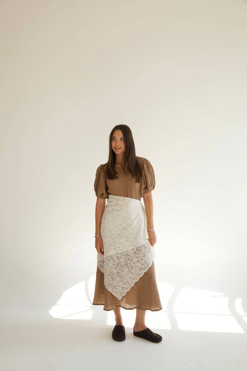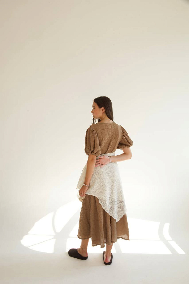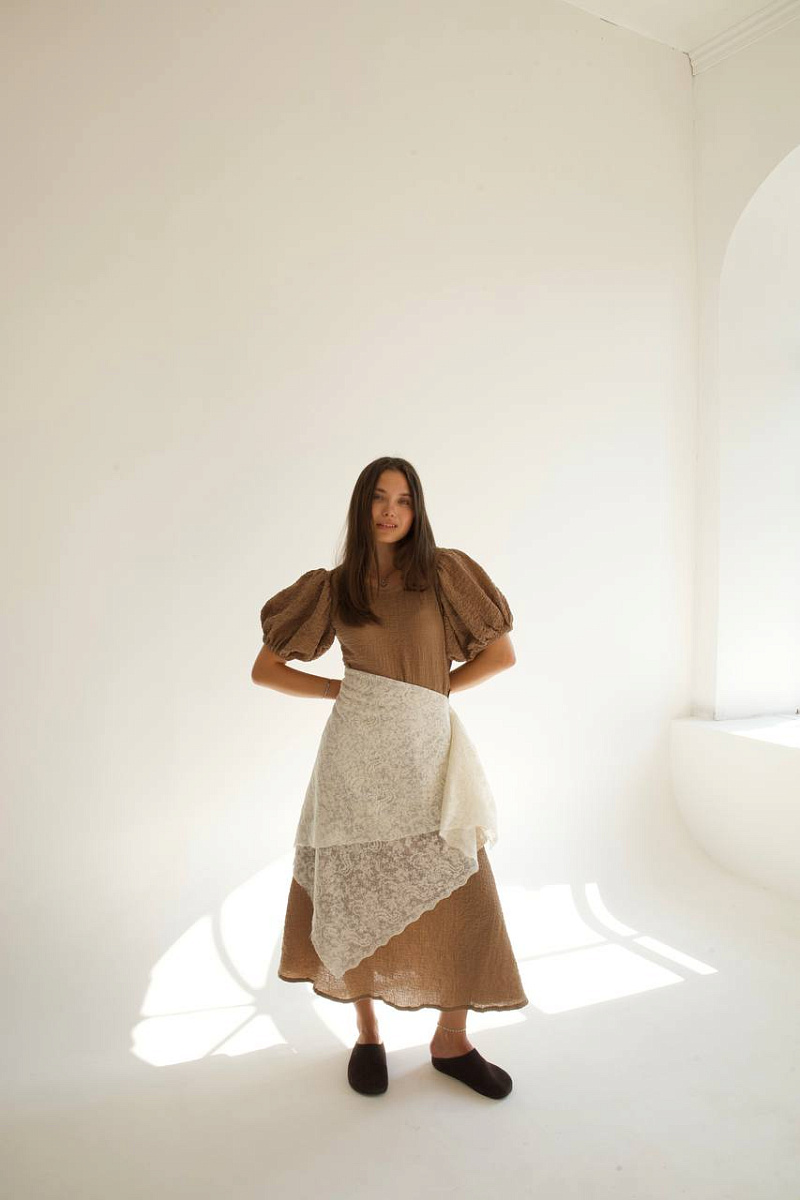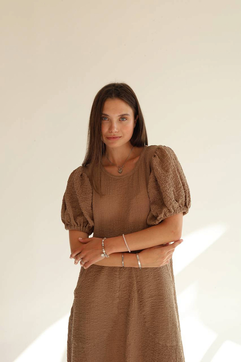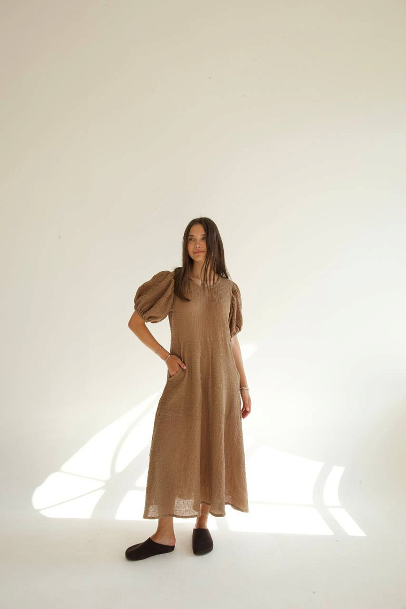 Свободный крой, фирменные воздушные рукава и правильная длина создают образ, будто старый кадр европейского фильма.