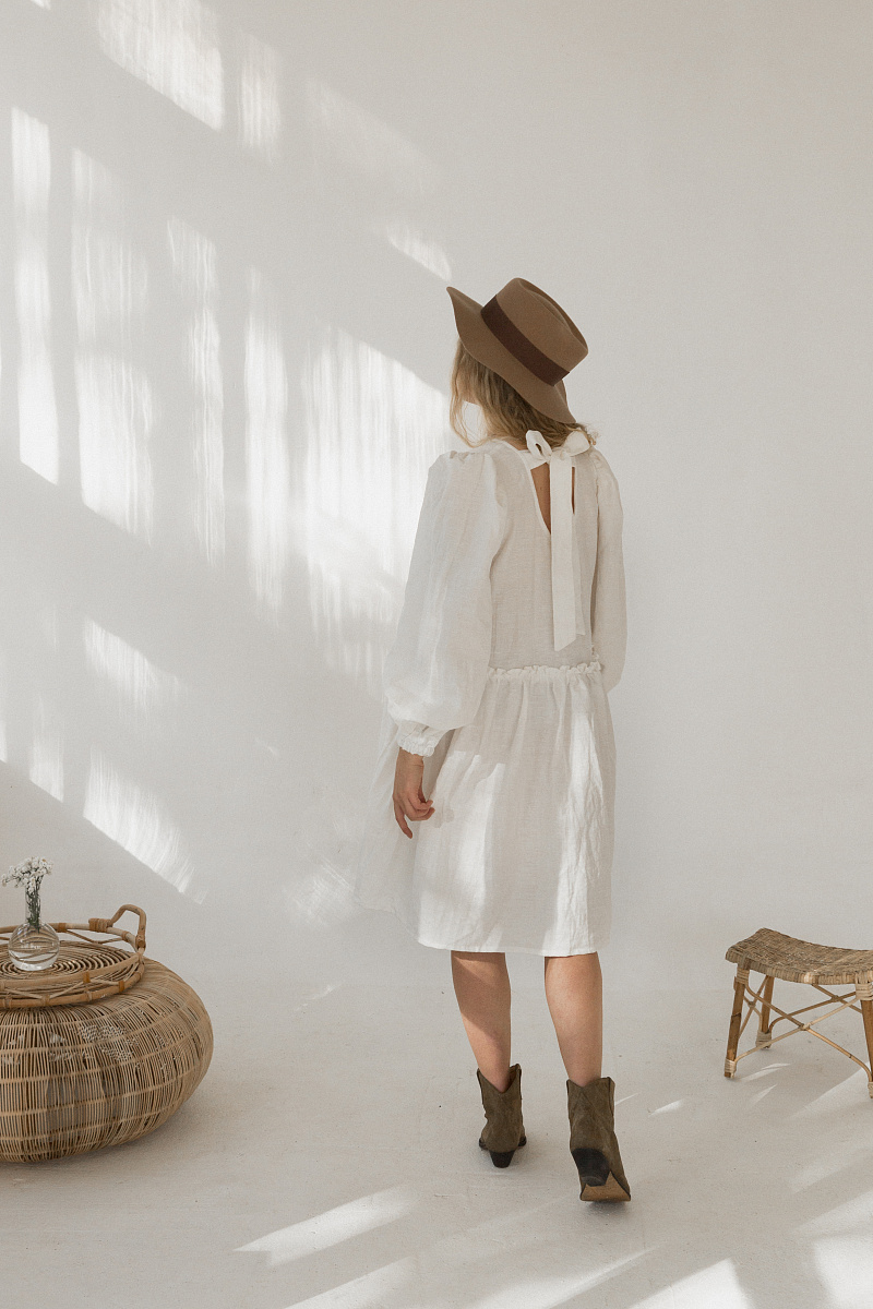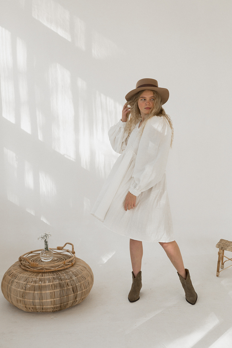Под заказНа модели изделие из белого льна.