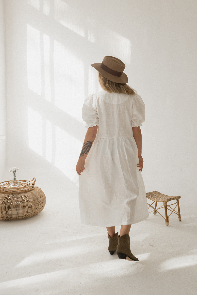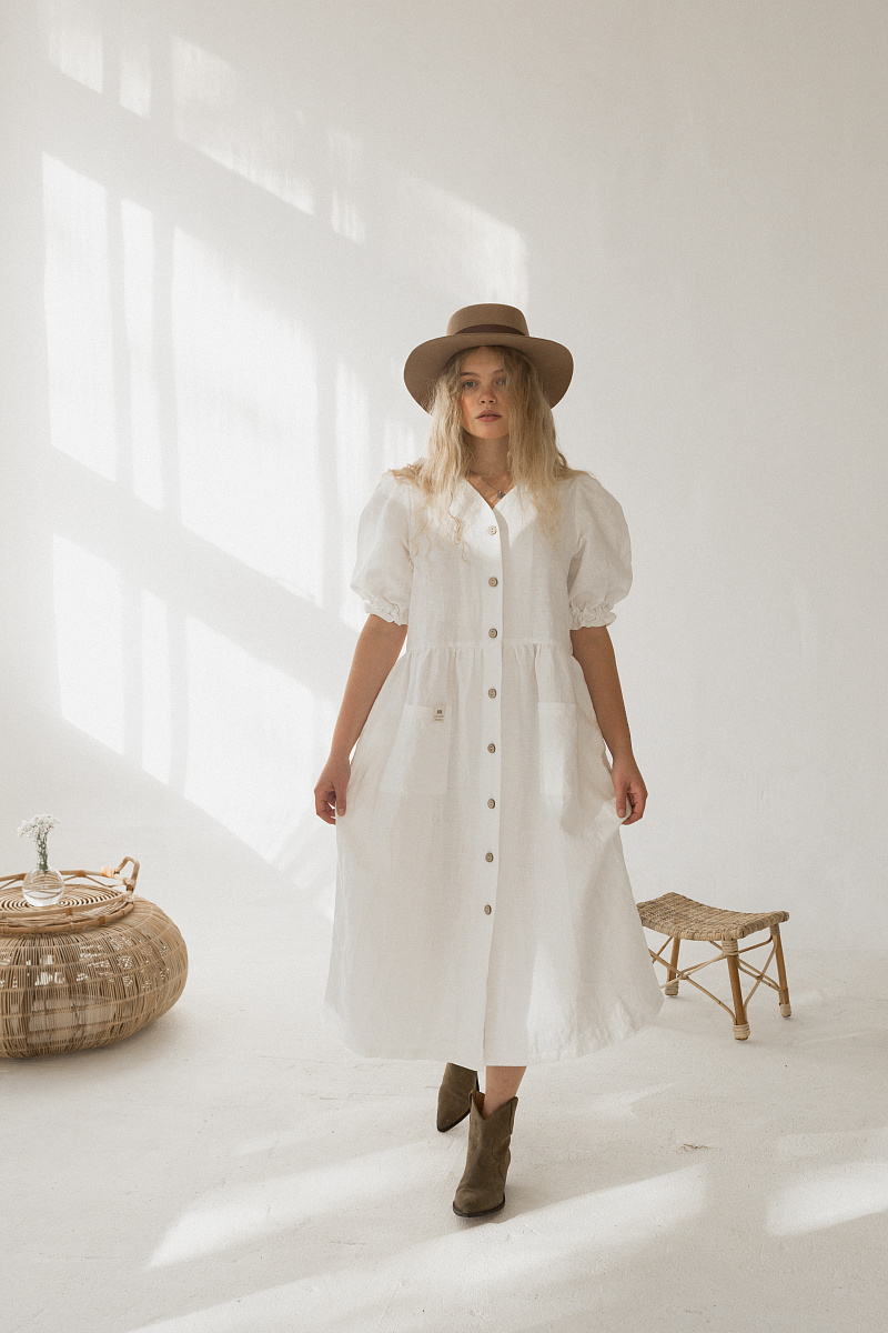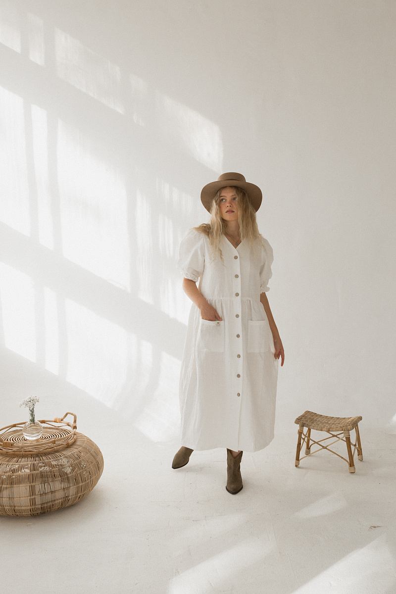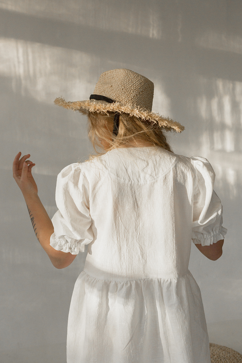 Под заказНа модели изделие из белого льна.