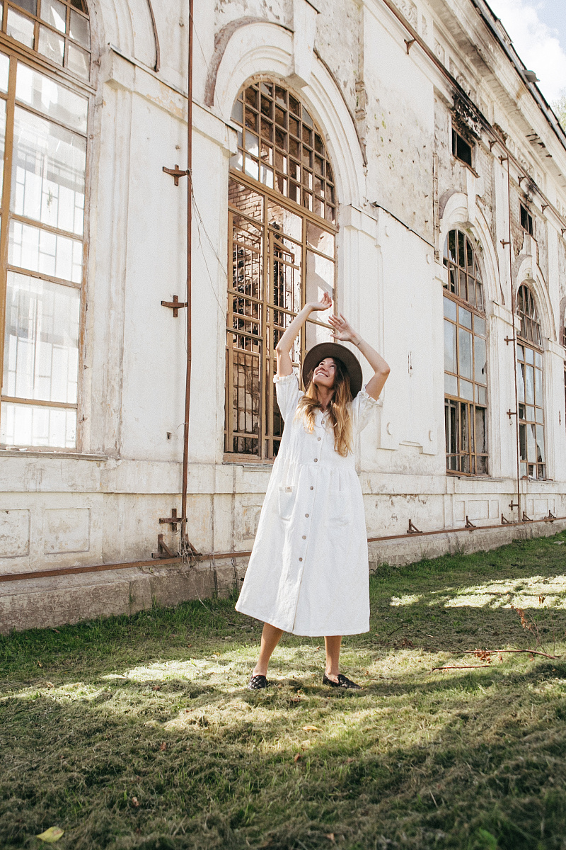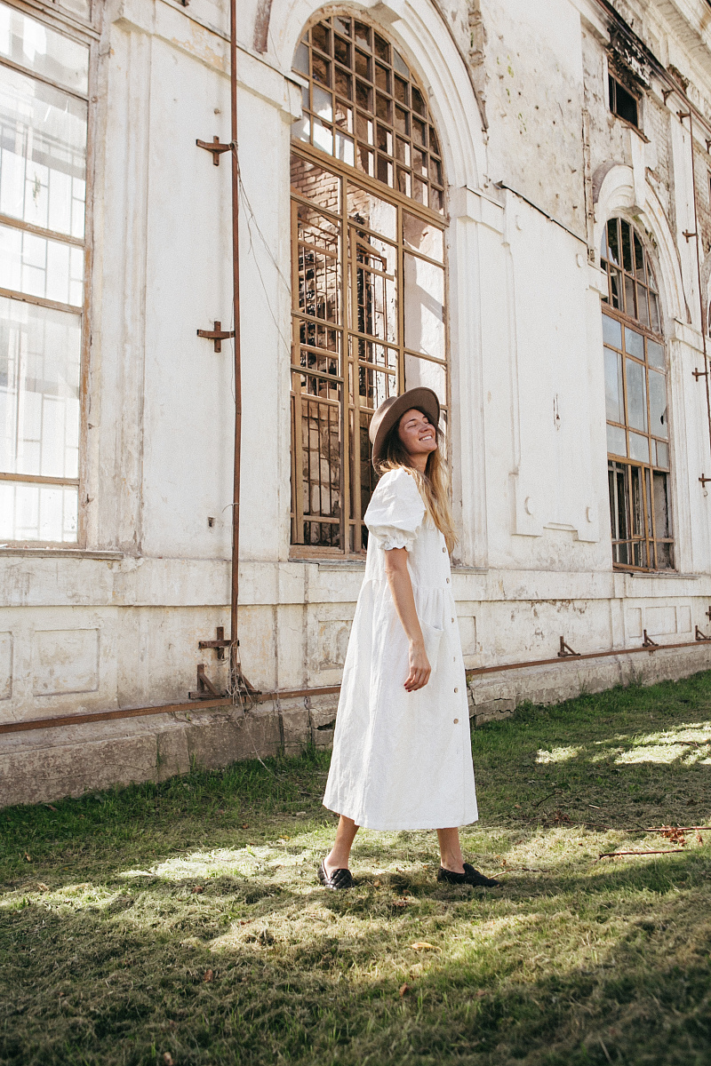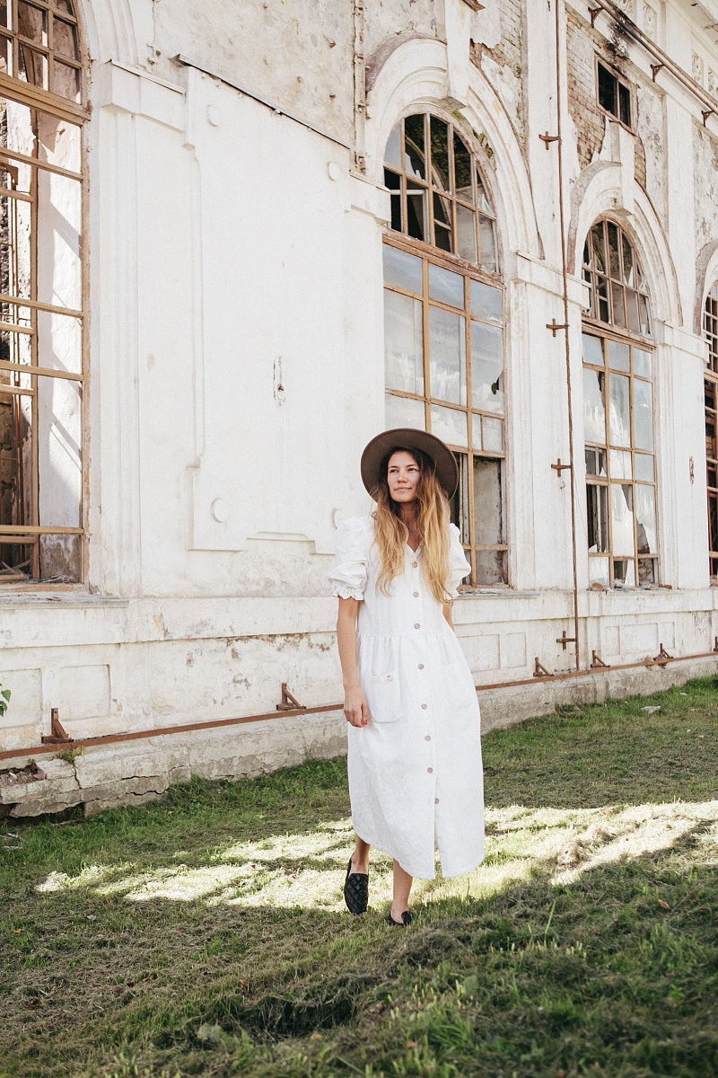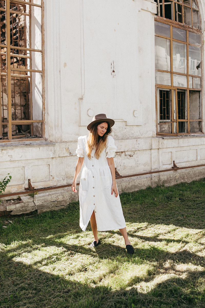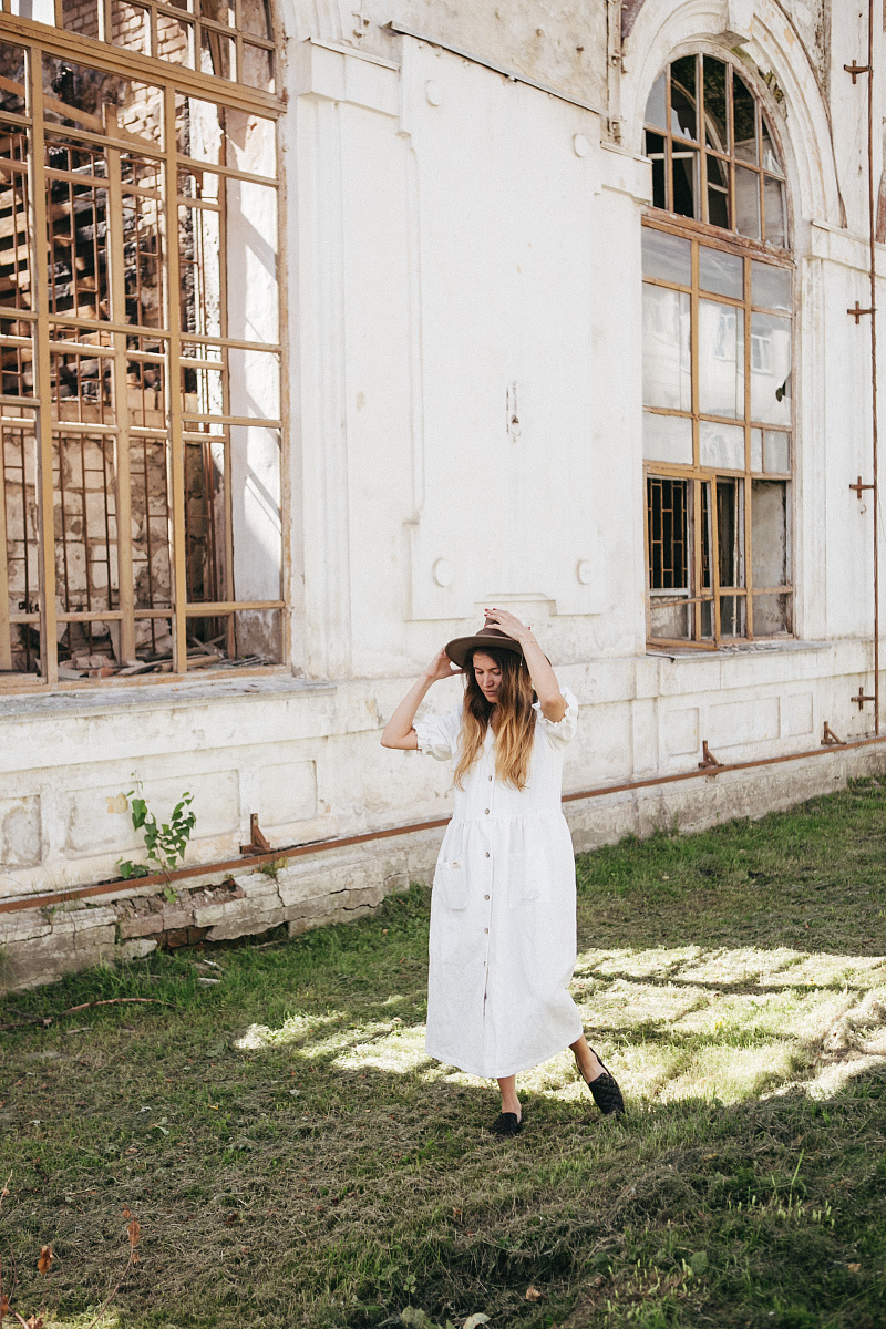 Под заказНа модели изделие из белого льна.