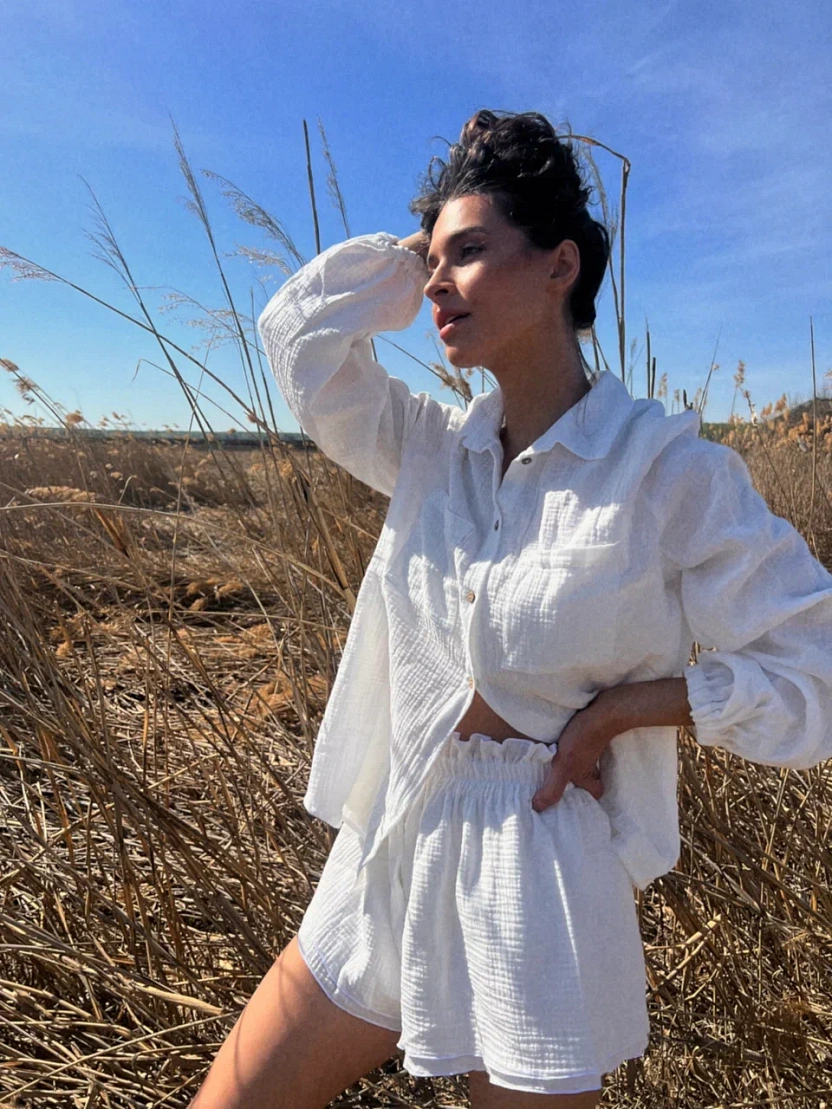 Эти женские шорты идеальны для лета! Изготовлены из муслина, они станут отличным выбором на каждый день. Лето - время свежих и стильных решений в гардеробе. Эта модель отлично подойдет для дома или пляжа, для городского и повседневного образа. Широкий пояс на резинке обеспечивает хорошую посадку на талии, что делает эту одежду удобной и практичной.