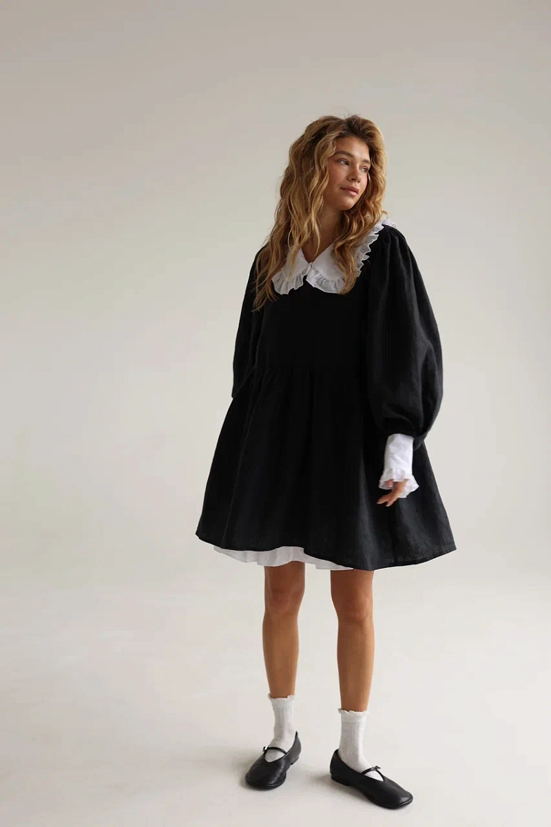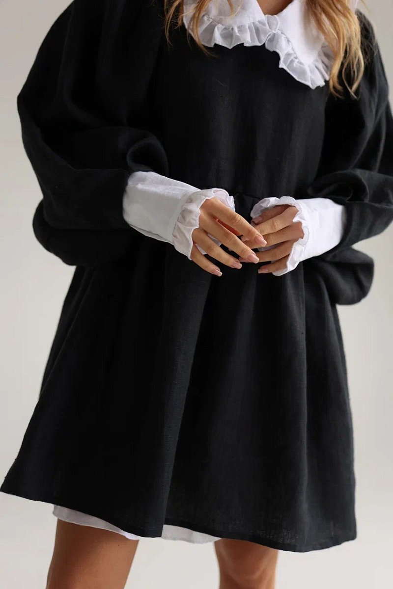 На модели Платье Париж выполнено в черном уплотненном льне.