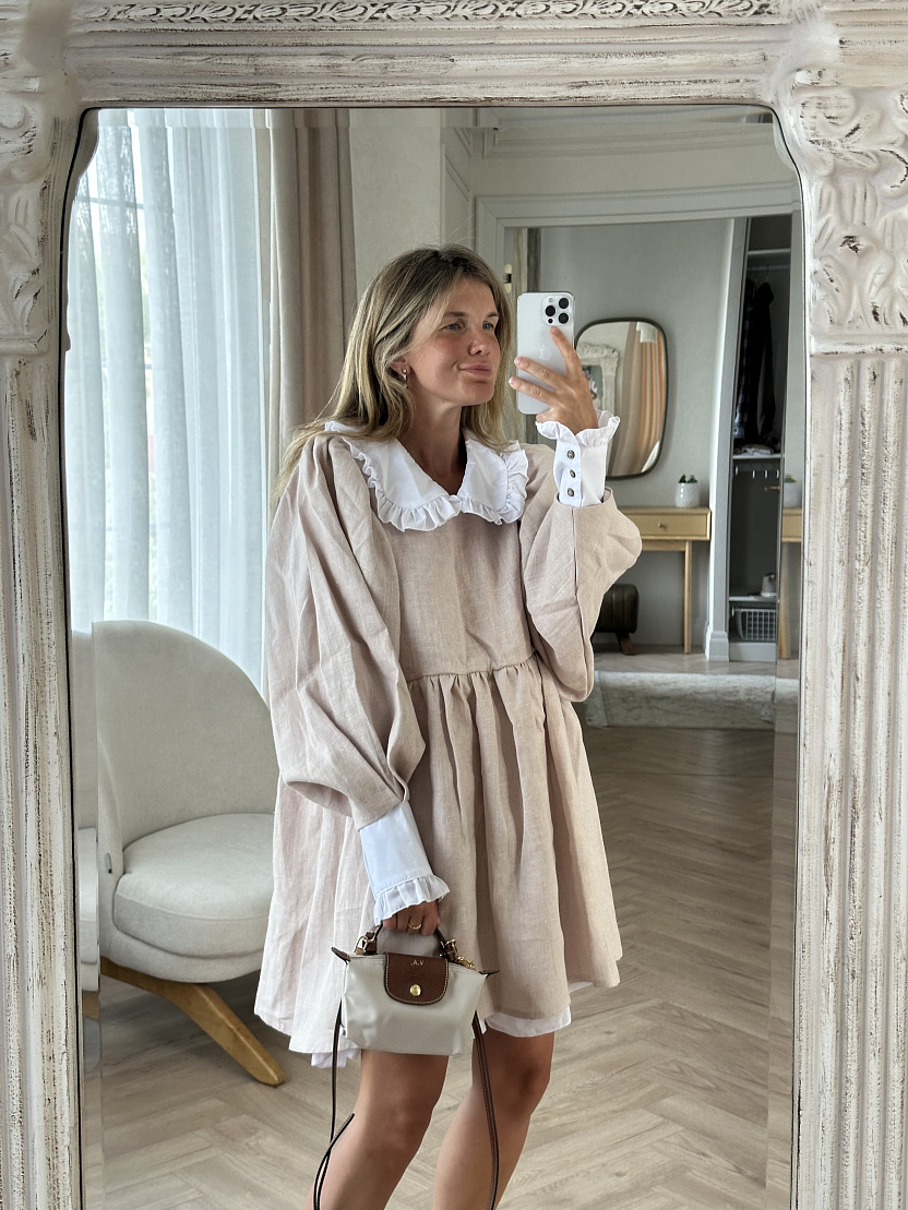 Платье Париж изо льна легкое, воздушное и элегантное. Прекрасно подойдет в качестве повседневного стиля, офисного дресс-кода. Можно носить с кедами, сандалиями, босоножками, а в холодное время года будет отлично сочетаться с ботинками на грубой подошве.