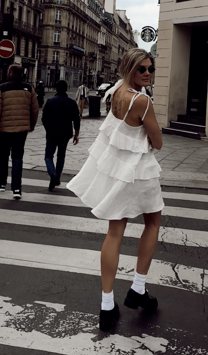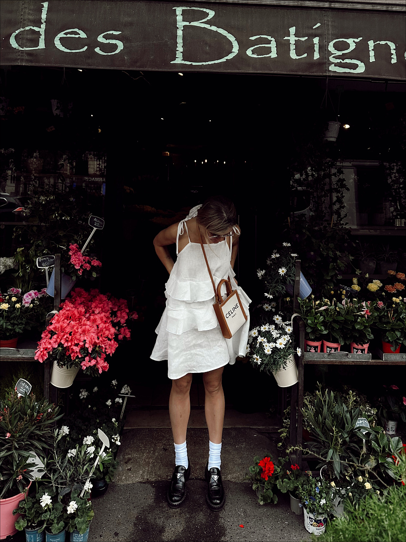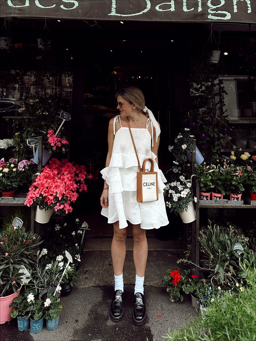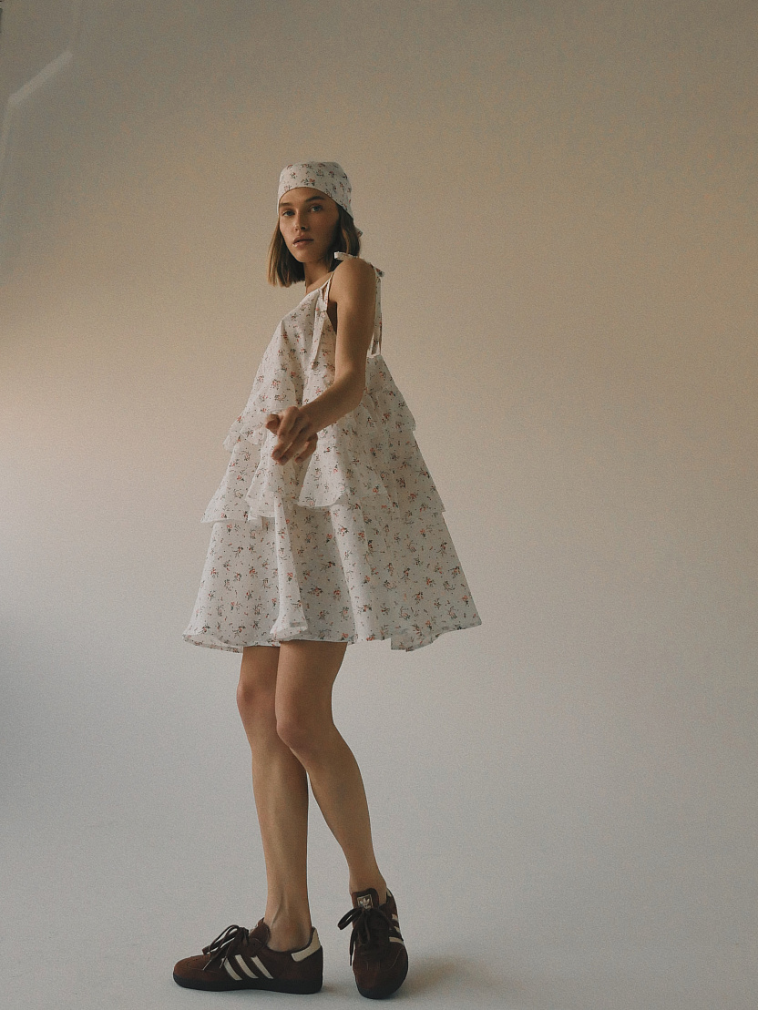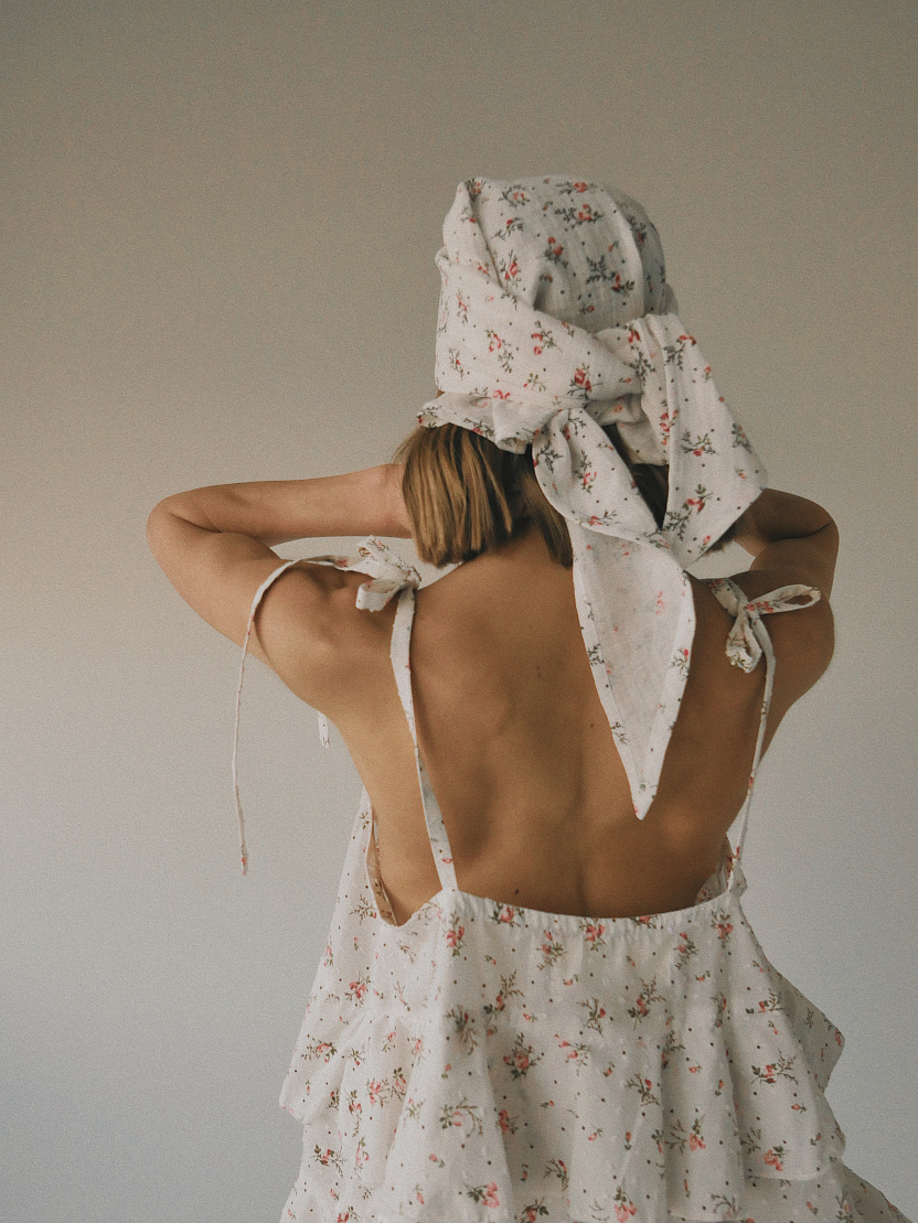 На фото изделие из белого льна, Тенсел Леопард