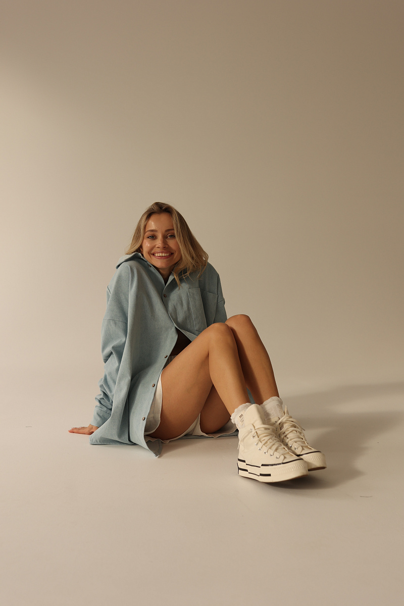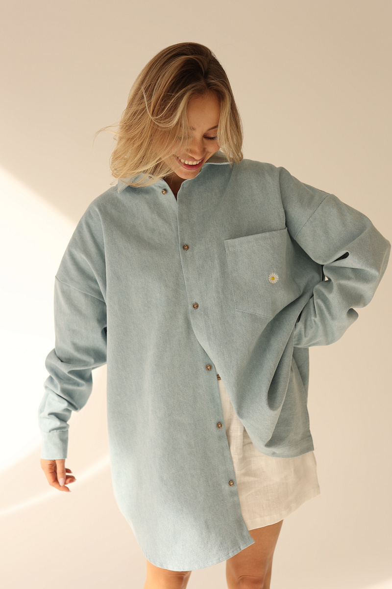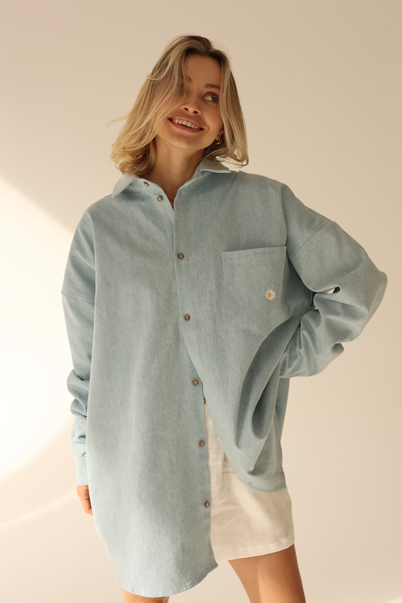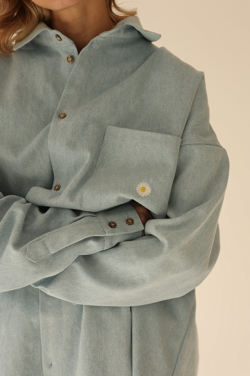 Рубашка Оверсайз с малюткой ромашкой Деним