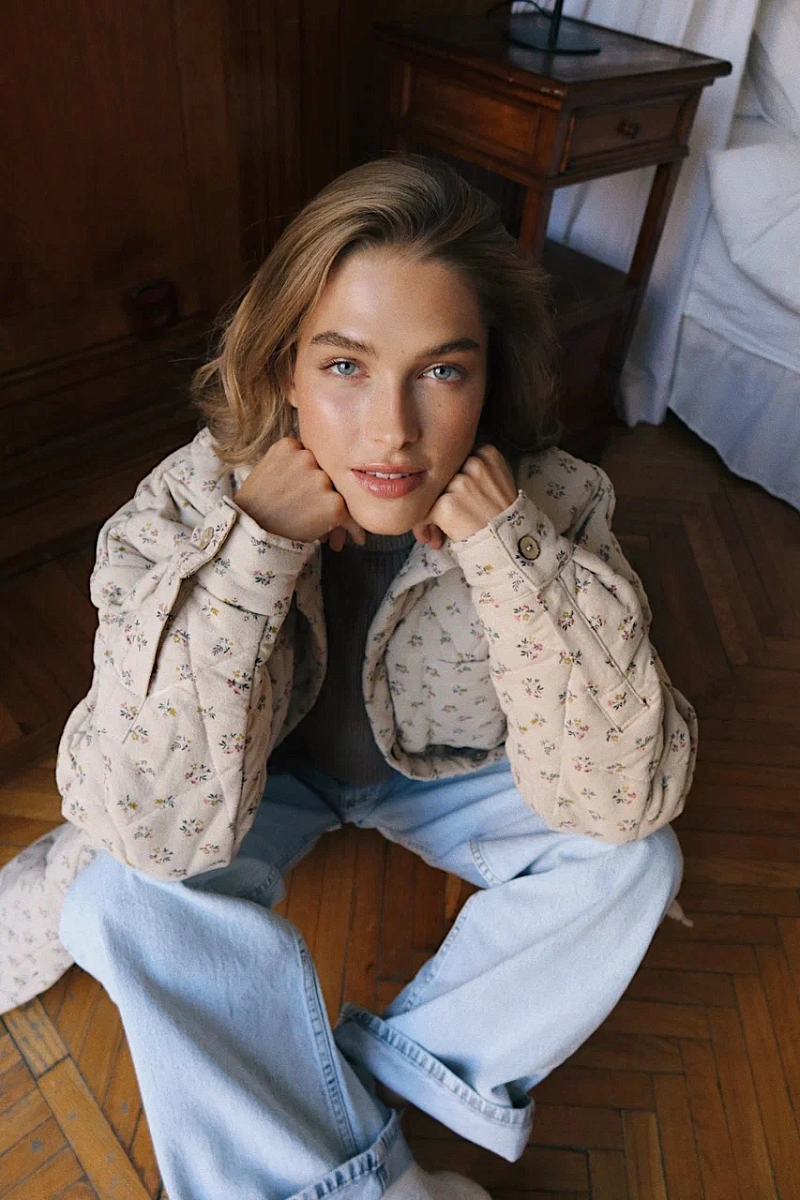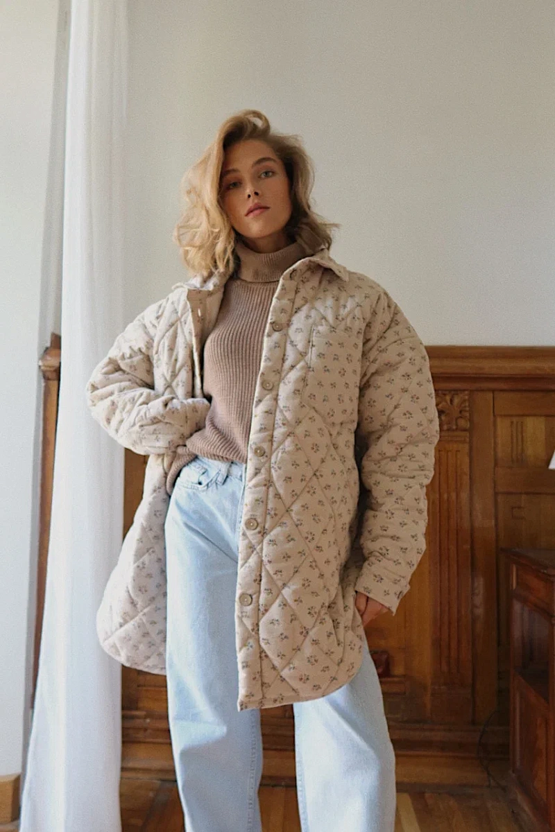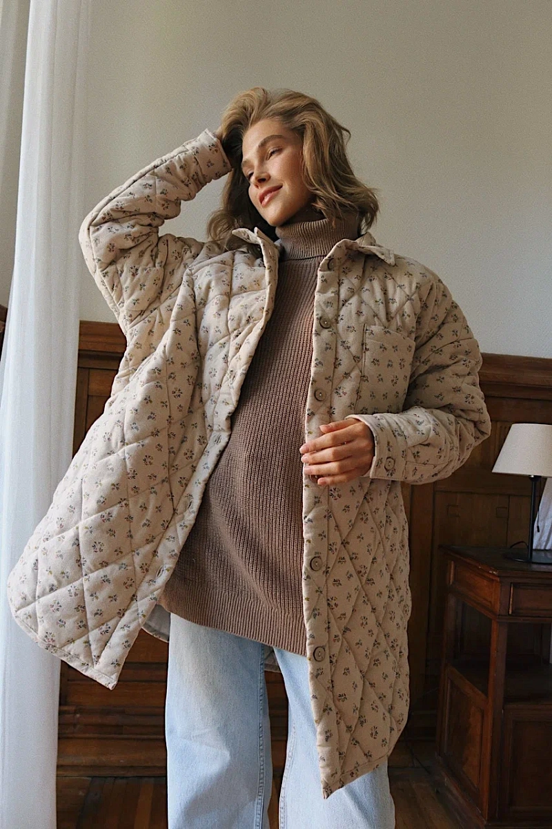 На фото стеганая рубашка new фланель в ткани "Цветочный букет "