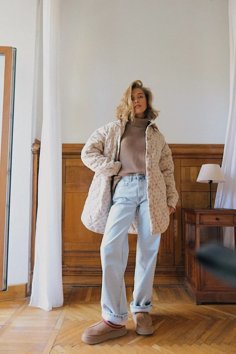 Стёганая рубашка удлинённая Фланель