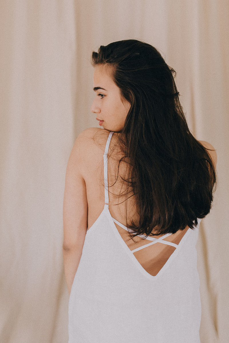 Под заказНа модели изделие из белого льна.
